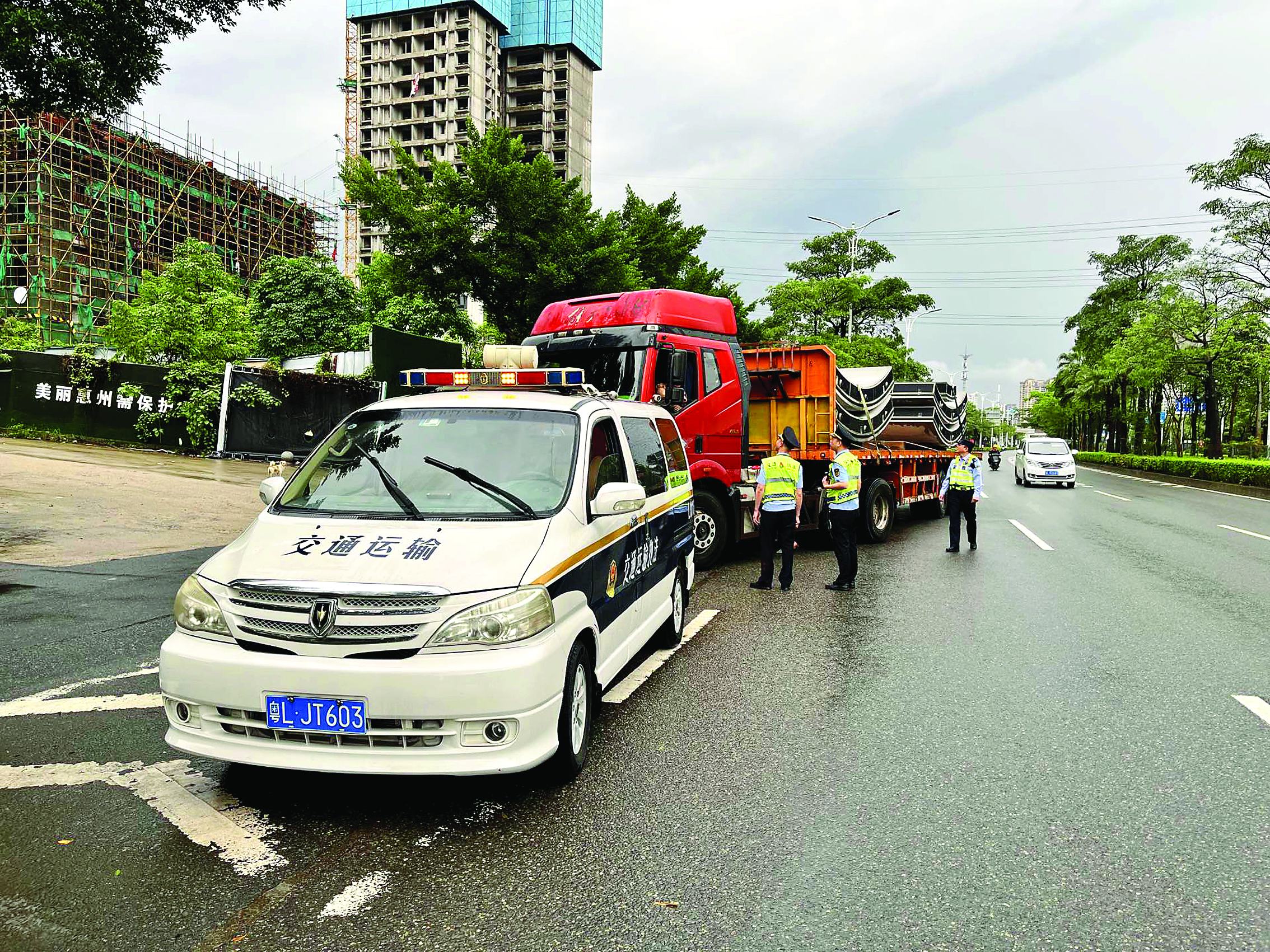 交通執(zhí)法人員檢查貨運車輛。惠州日報記者戴建 通訊員鐘慧綺 攝