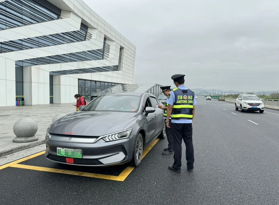 交通執(zhí)法人員檢查網(wǎng)約車。