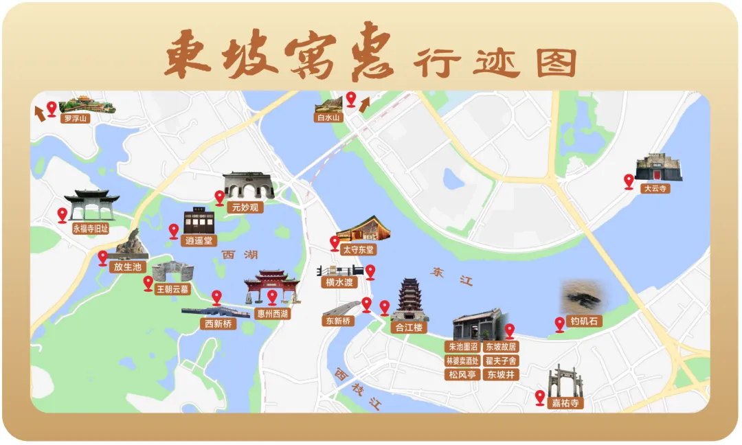 為深入貫徹習近平文化思想,進一步做好東坡文化的傳承與發(fā)展,弘揚優(yōu)秀傳統(tǒng)文化,堅定文化自信,營造濃厚的東坡文化宣傳氛圍,配合做好我市5月19日舉辦的“2024尋跡東坡--惠州City walk徒步活動”,在中共惠州市委宣傳部的支持指導下,惠城區(qū)在活動沿途涉及的11個東坡寓惠遺跡點(湯泉、大云寺、元妙觀、永福寺舊址、西湖、放生池、太守東堂、橫水渡碼頭、合江樓、東坡故居、釣磯石)制作了東坡寓惠主題小景觀,成為市民參與活動的打卡點,讓市民近距離了解東坡寓惠文化。