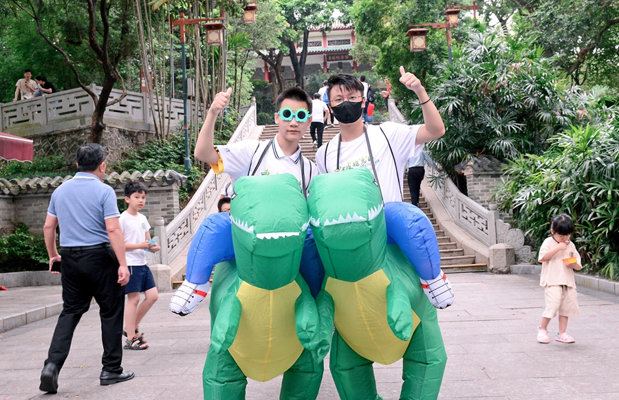 市民黃秋梅和5歲的兒子來(lái)了個(gè)“中西合璧”,分別扮演“白雪公主”和“孫悟空”,吸引了不少眼球。“今年3月我們參加了惠州馬拉松歡樂(lè)跑,看到了不少‘顯眼包’裝扮,感覺(jué)特別有趣,孩子也很喜歡,還想再次參加類似的活動(dòng),得知惠州舉行City walk活動(dòng),我們第一時(shí)間報(bào)名,并購(gòu)買了這兩套顯眼包服飾,制造‘驚喜’,娛樂(lè)一下大家!秉S秋梅說(shuō),作為一名新惠州人,她非常喜歡惠州的生活環(huán)境和城市的包容感,看到不少家庭帶著孩子參加活動(dòng),大家熱愛(ài)生活、積極健康的狀態(tài)讓她很受鼓舞。