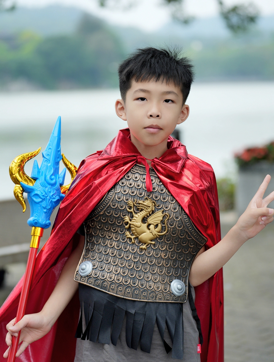 “今天的主題是尋跡東坡,我喜歡漢服,也喜歡東坡文化。我兒子特別喜歡葫蘆娃,所以把他打扮成七娃,帶他一起參加活動(dòng)。”活動(dòng)現(xiàn)場(chǎng),身穿漢服帶著“葫蘆娃”的市民陳女士告訴記者,作為惠州人,她對(duì)家鄉(xiāng)有著特別的感情,一看到活動(dòng)通知她就激情滿滿報(bào)名參加,并特地買上了兒子喜歡的葫蘆娃造型服飾。
