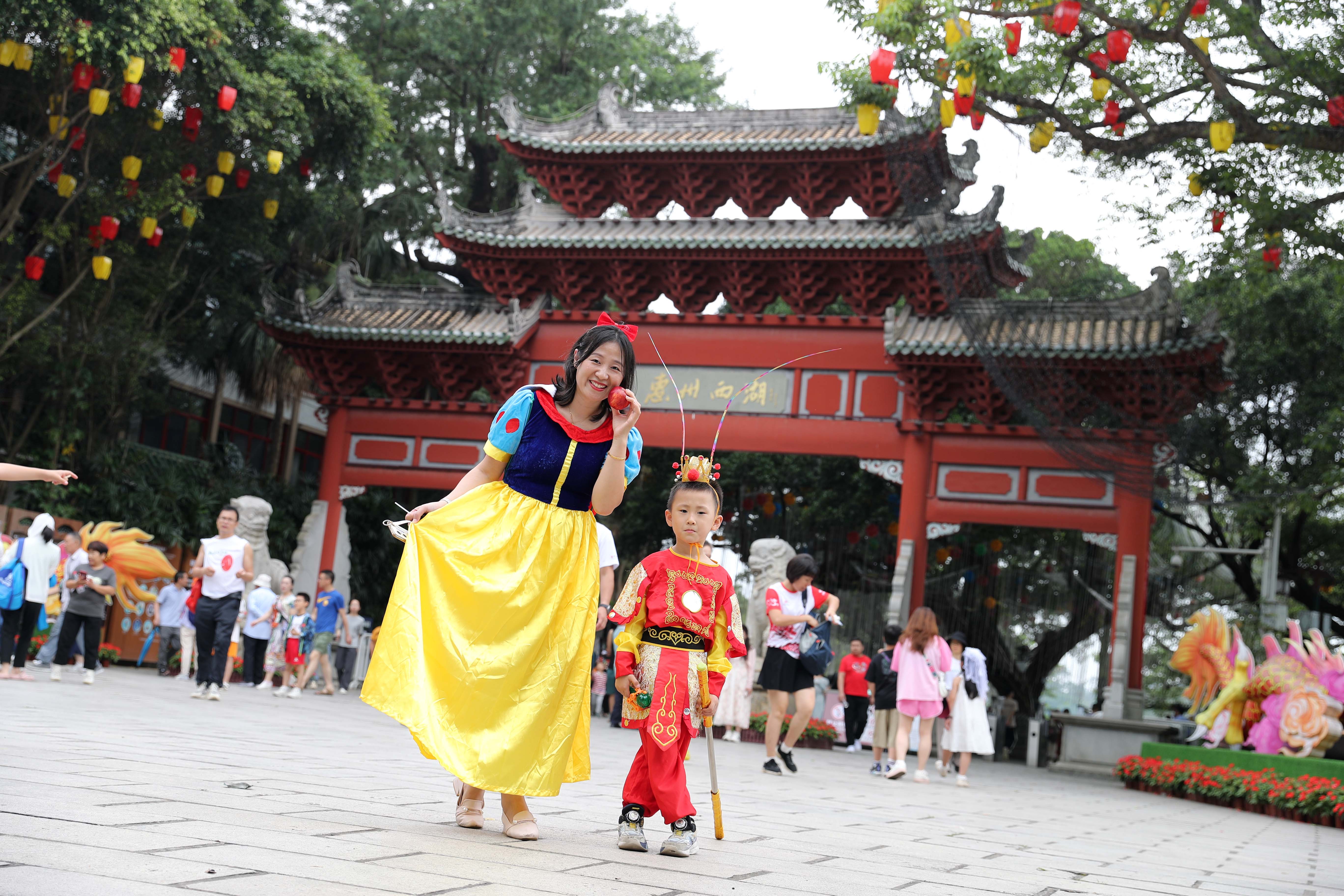 “白雪公主”媽媽和“孫悟空”兒子。 惠州日報記者楊建業(yè) 鐘暢新 張藝明 攝