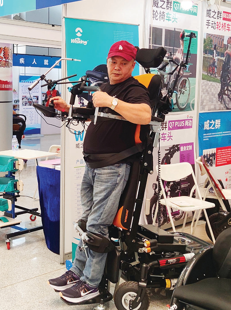 現(xiàn)場體驗電動站立輔助輪椅。
