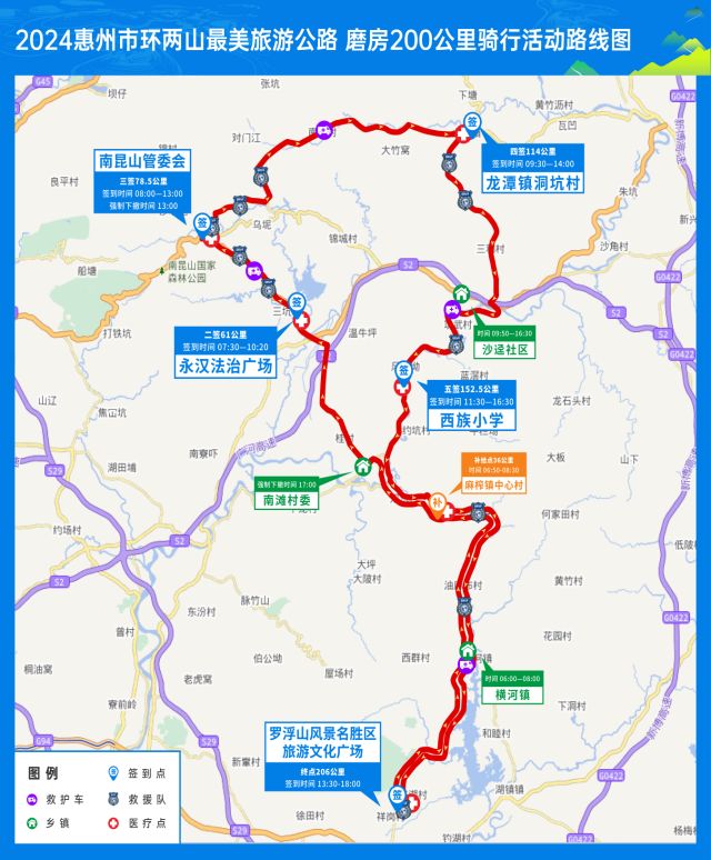 2024惠州市環(huán)兩山騎行活動(dòng)交通管制路段及時(shí)間示意圖