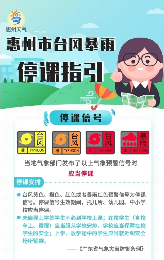 面對暴雨、臺風(fēng)等極端天氣很多惠州家長關(guān)心哪些情況下可以延遲上學(xué)?什么樣的預(yù)警信號應(yīng)當(dāng)停課?
