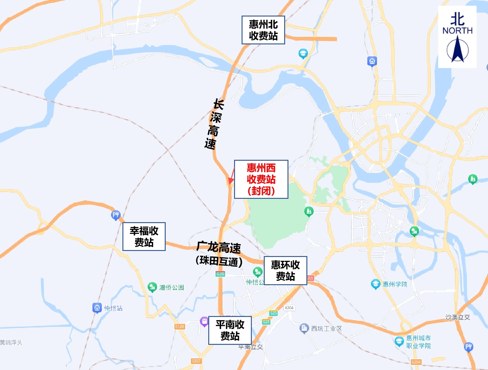 臨時(shí)交通管制期間,此前長深高速往返惠州選擇惠州西收費(fèi)站通行的車輛,請(qǐng)選擇就近的惠州北收費(fèi)站或平南收費(fèi)站上下高速;或經(jīng)珠田互通轉(zhuǎn)廣龍高速,從幸福收費(fèi)站或惠環(huán)收費(fèi)站上下高速。