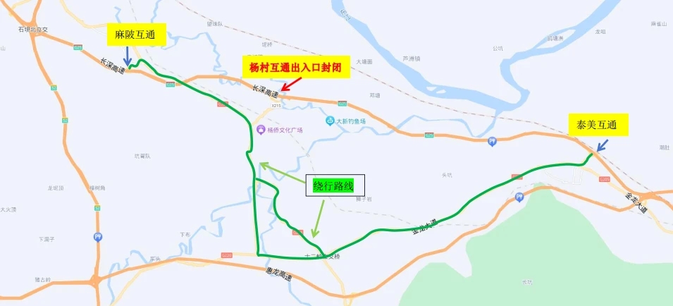 此前經(jīng)行楊村收費(fèi)站的車輛。長深高速北往南行駛往博羅縣楊村鎮(zhèn)的車輛,請(qǐng)?zhí)崆皬穆橼槭召M(fèi)站下高速繞行G205前往,或從泰美收費(fèi)站下高速繞行G205前往;長深高速南往北行駛前往博羅縣楊村鎮(zhèn)的車輛,請(qǐng)?zhí)崆皬奶┟朗召M(fèi)站下高速繞行G205前往,或從麻陂收費(fèi)站下高速繞行G205前往。