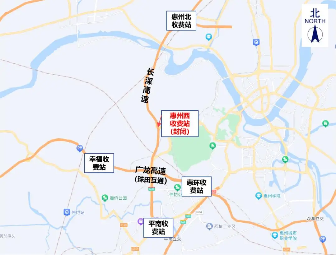原計(jì)劃經(jīng)惠河高速往返惠州的車(chē)輛,可選擇就近的白石站(惠州北站)或平南站上下高速;或經(jīng)珠田互通轉(zhuǎn)廣龍高速,從幸福站或惠環(huán)站上下高速。