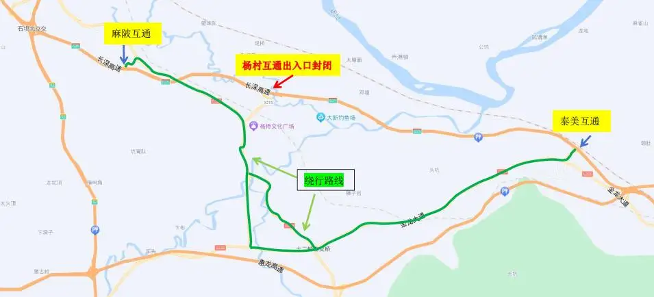 原計(jì)劃經(jīng)長(zhǎng)深高速北往南行駛往博羅縣楊村鎮(zhèn)的車(chē)輛,請(qǐng)?zhí)崆皬穆橼檎鞠赂咚倮@行國(guó)道G205前往,或從泰美站下高速繞行國(guó)道G205前往;