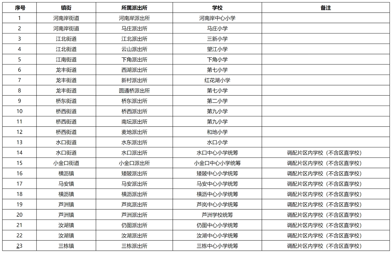 。ㄒ唬┗莩菂^(qū)集體戶籍按所屬派出所集體戶口地址統(tǒng)籌安排學(xué)校,具體安排如下: