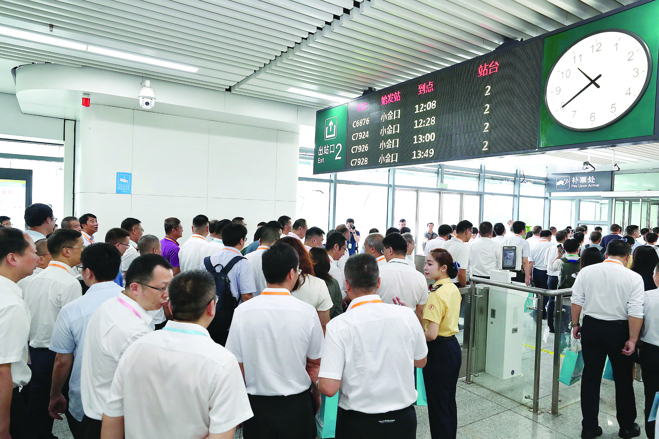 線路全面啟用“站站停+大站快車(chē)”公交化運(yùn)營(yíng)模式,并執(zhí)行“肇慶站-小金口站”和“佛山西站-小金口站”交路。旅客可通過(guò)站臺(tái)、站廳信息顯示屏、車(chē)站廣播的列車(chē)信息,區(qū)分“站站!焙汀按笳究燔(chē)”,現(xiàn)場(chǎng)還有車(chē)站工作人員持手舉牌指引。