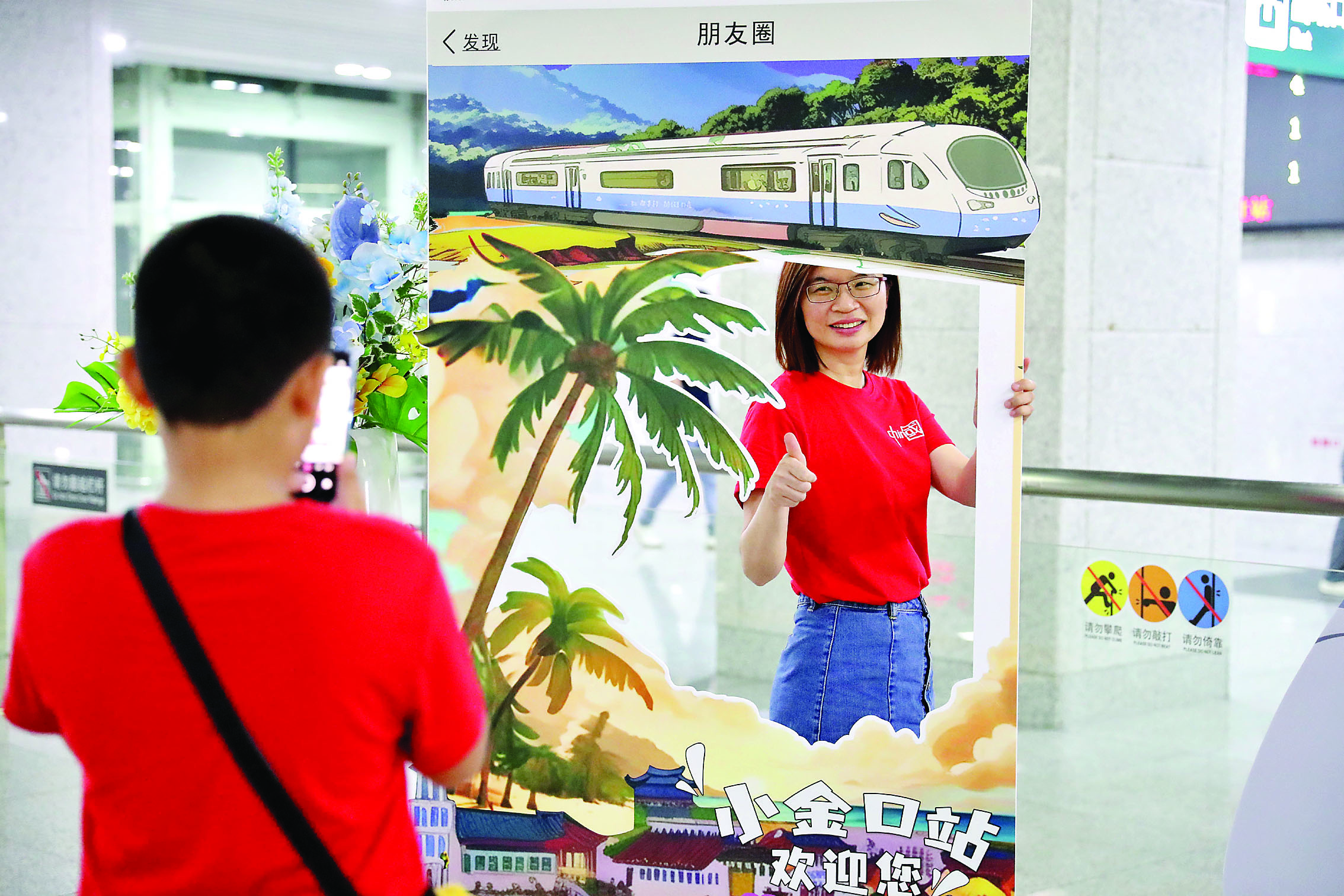 旅客在小金口站打卡點(diǎn)拍照留念。