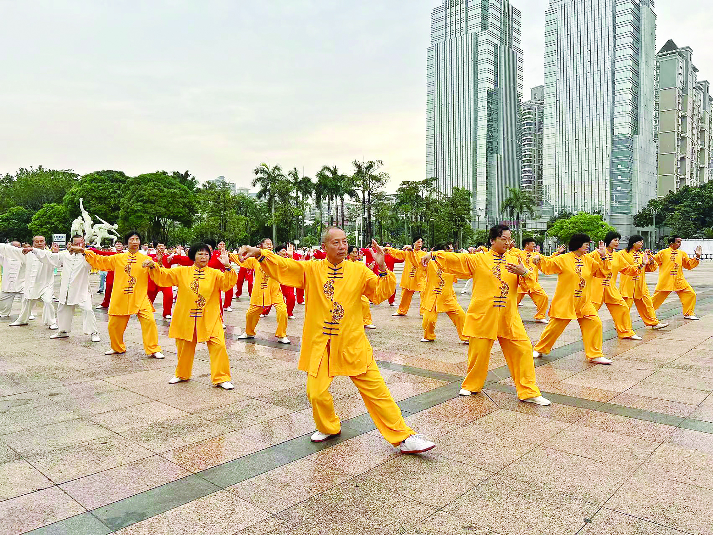 一招一式瀟灑飄逸,一拳一掌松弛優(yōu)美。日前,惠州市第二十四屆太極拳活動月總結(jié)匯報展示活動在惠州體育館前廣場舉行,來自我市各地的太極拳愛好者共500多人參與展演;葜萑請笥浾啐忓 譚琳 攝