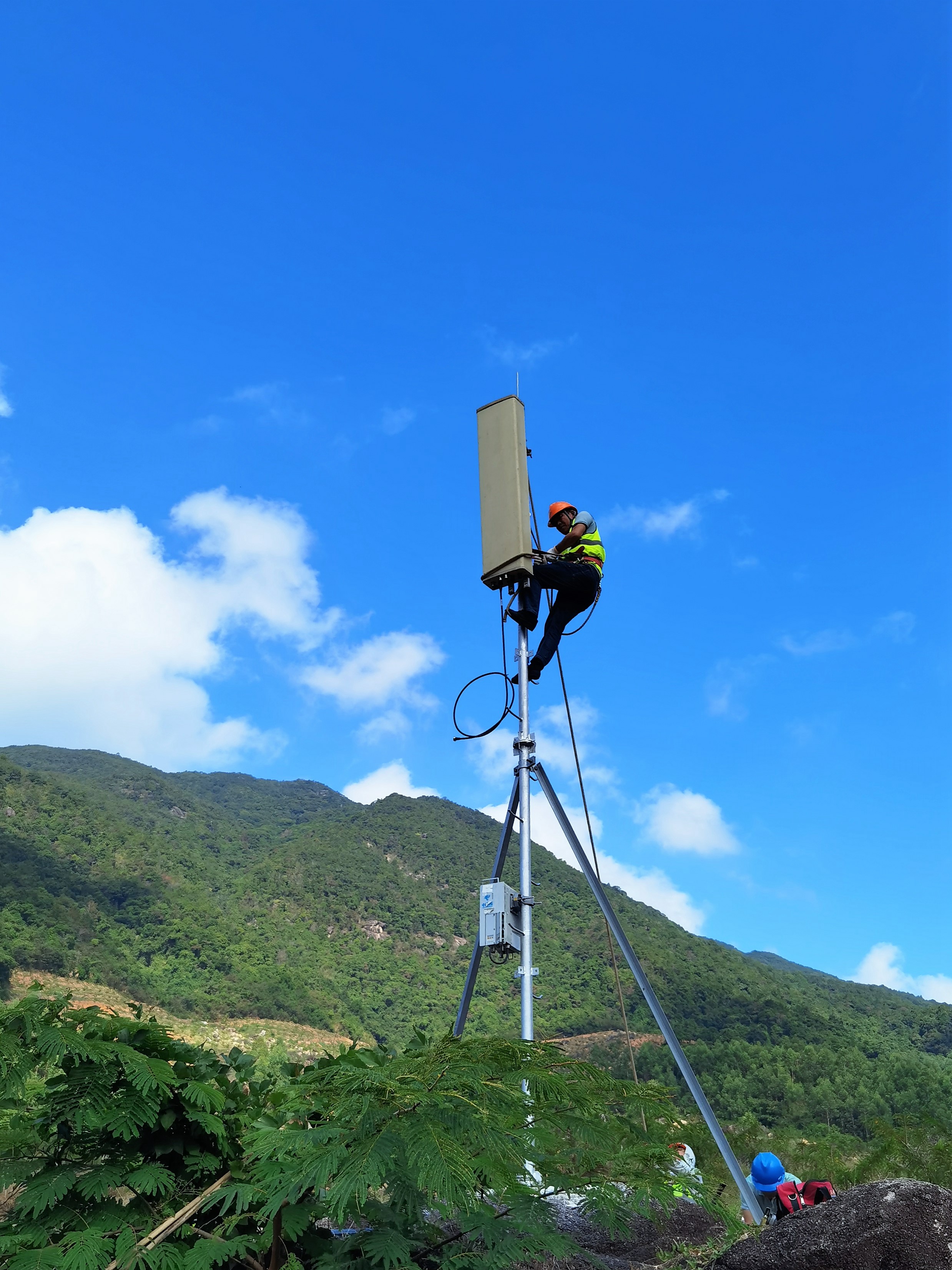 工作人員在檢查調(diào)試通信基站。