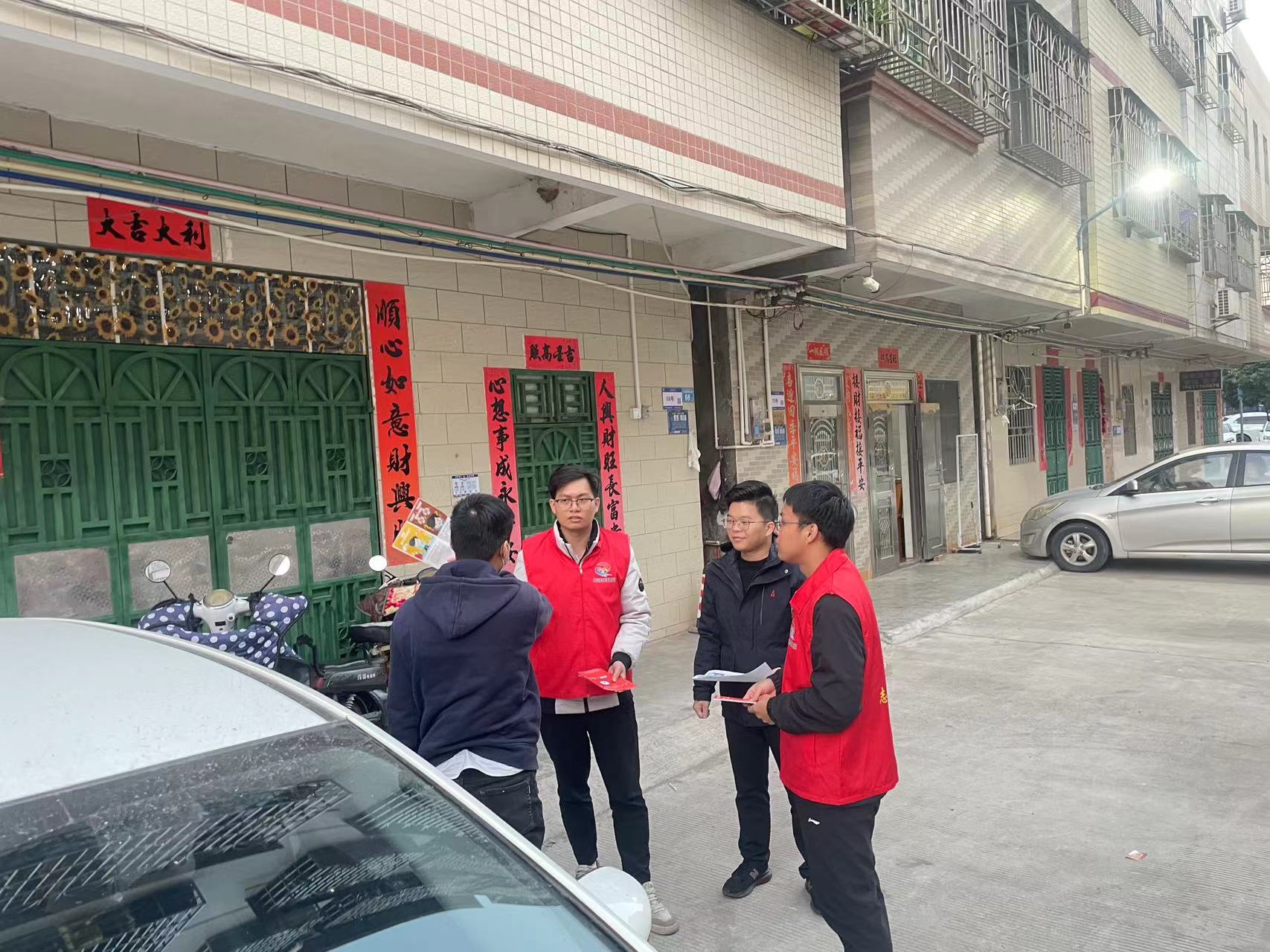 工作人員在仲愷潼僑金星村向居民科普手機信號知識。