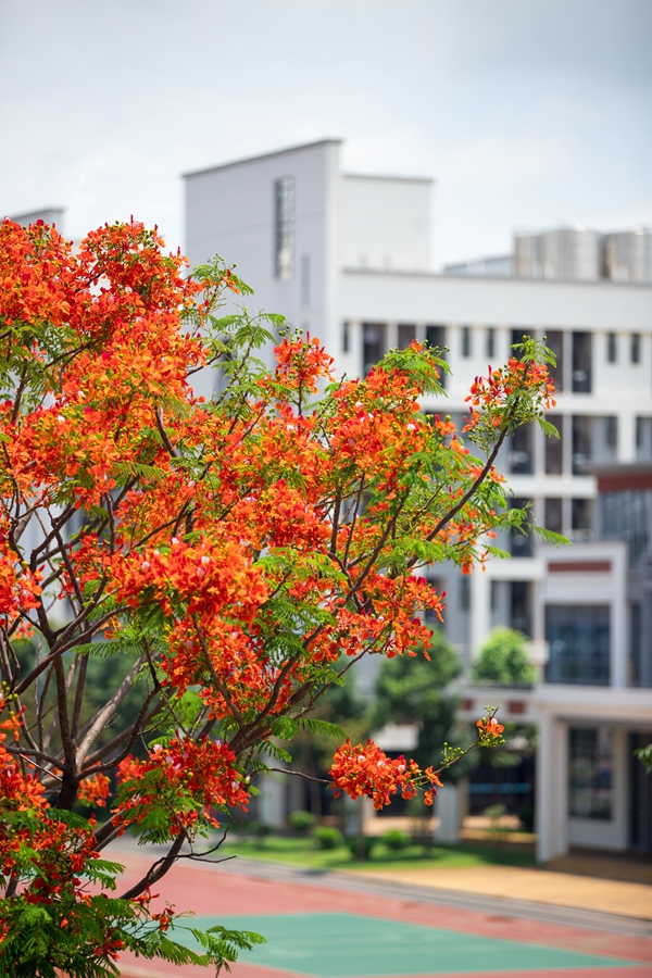 惠州中學(xué)四周遍栽鳳凰樹,“葉如飛凰之羽,花若丹鳳之冠”,如無數(shù)鳳凰展翅欲飛。鳳凰涅槃,浴火重生,是極具生命力的代表。為此,惠州中學(xué)選擇“鳳凰”作為“生命力學(xué)校”的象征,寓意“育五彩繽紛之才,筑五彩人生之基!