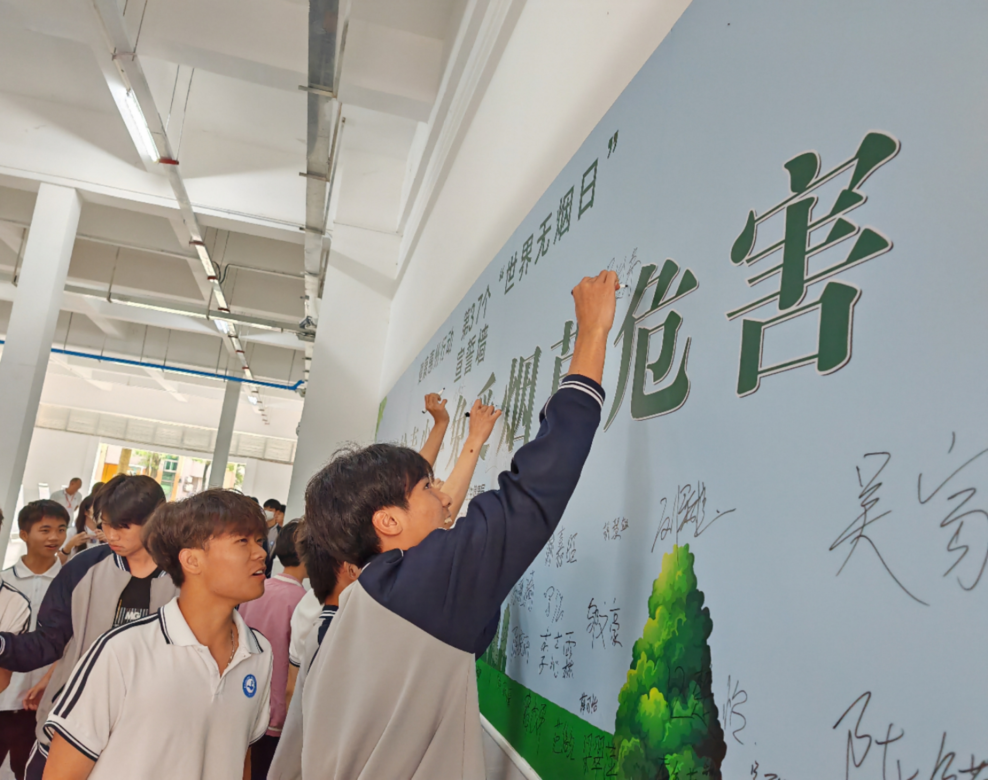 學(xué)生簽名拒絕吸煙;葜萑?qǐng)?bào)記者周智聰 攝