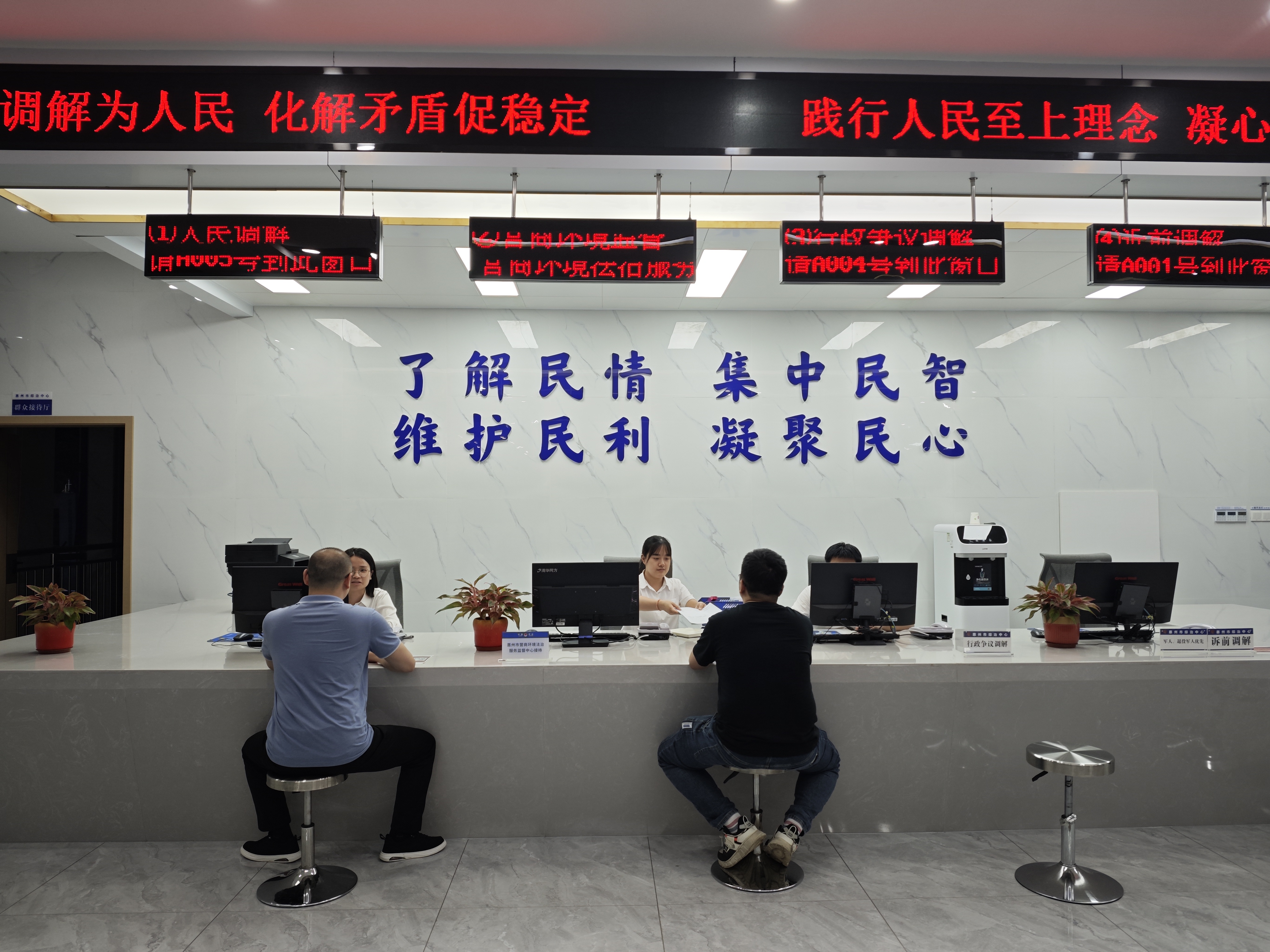 惠州市營(yíng)商環(huán)境法治服務(wù)監(jiān)督中心辦事前臺(tái)。