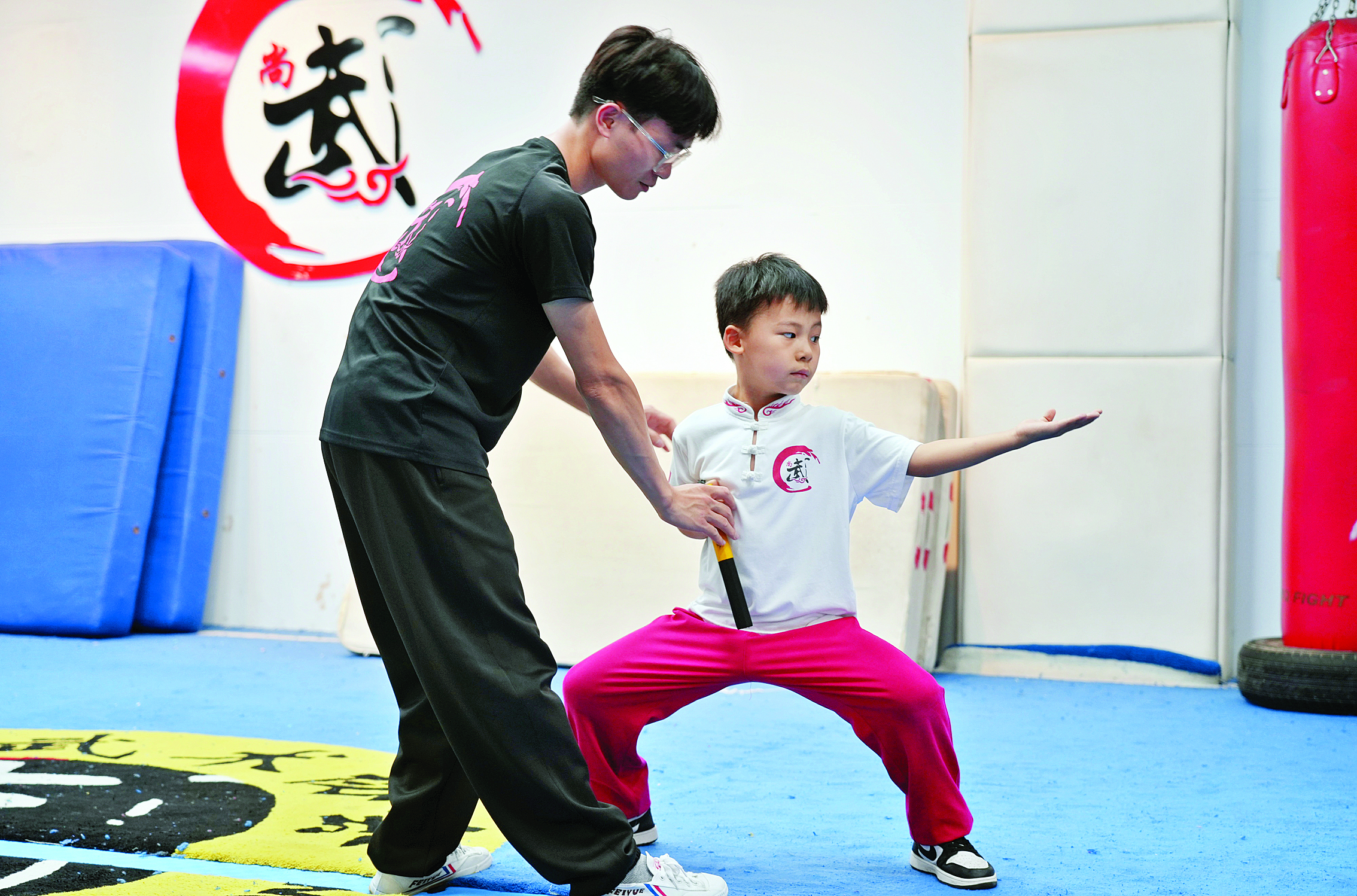教練指導(dǎo)小孩練習(xí)李家拳。