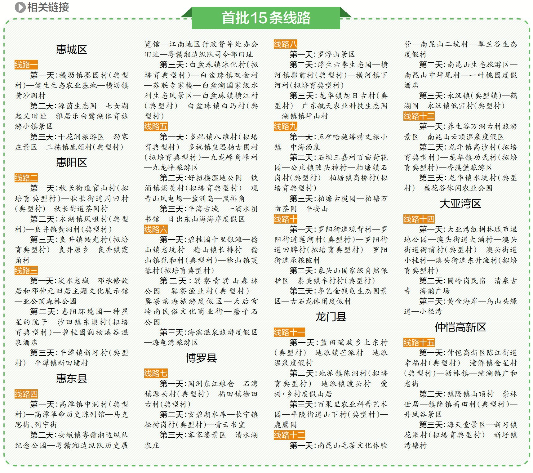 記者看到,首批15條活動(dòng)線路主題各不相同,且各線路通過整合全市精品旅游資源,涵蓋了各縣(區(qū))的“百千萬工程”優(yōu)質(zhì)典型鎮(zhèn)村、特色(風(fēng)情)小鎮(zhèn)和文旅酒店度假綜合體等,從惠州工會(huì)職工鄉(xiāng)村療休養(yǎng)首批推薦線路延伸出的,是一個(gè)全方位展示惠州良好生態(tài)環(huán)境和嶄新城鄉(xiāng)發(fā)展面貌的窗口。