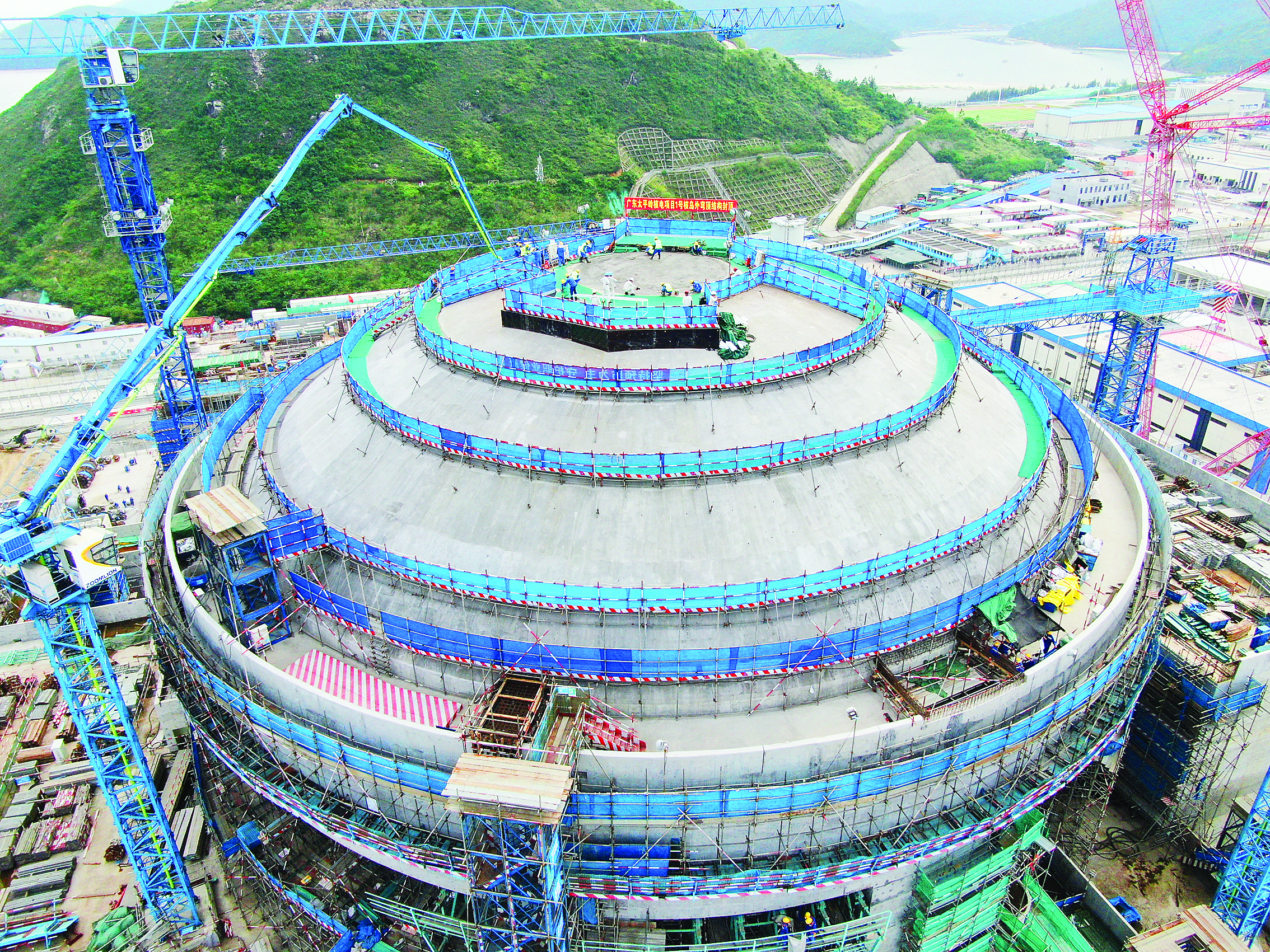 5月30日,廣東太平嶺核電1號機組核島外穹頂澆筑順利完成。