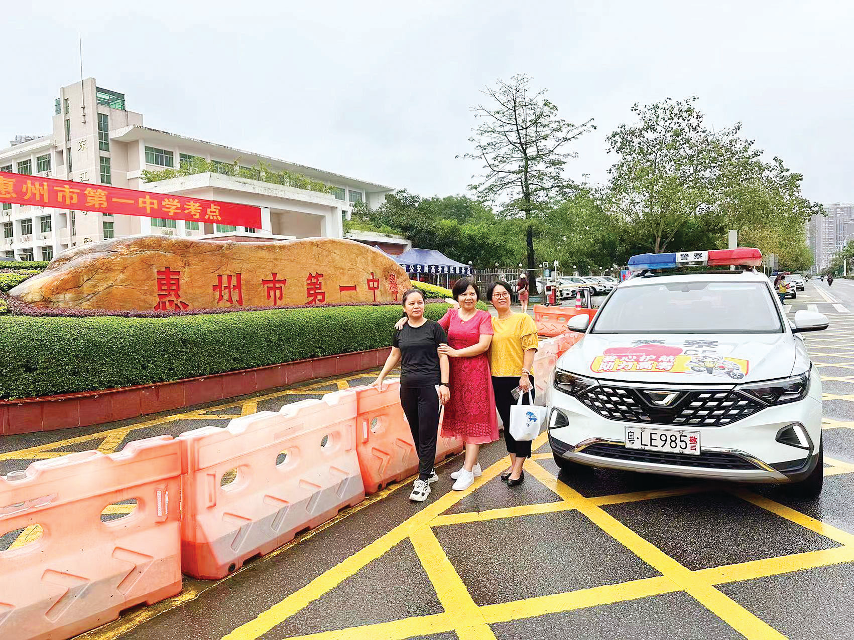 一大早,在惠州市第一中學(xué)門(mén)外,一輛車牌號(hào)為“985”的護(hù)考警車成為“顯眼包”!昂靡忸^”的出現(xiàn),讓家長(zhǎng)和考生眼前一亮,緊張的情緒也得到了舒緩。大家都搶著和這輛寓意特別的警車合影留念。