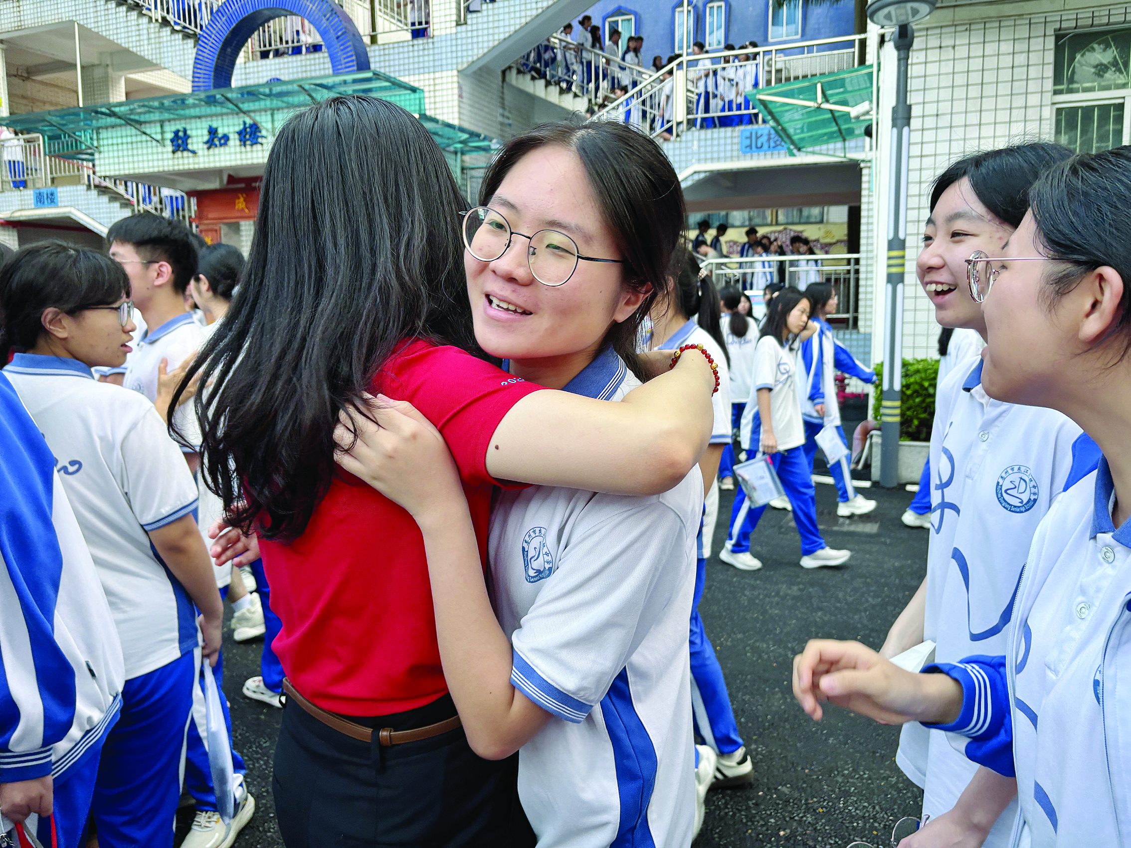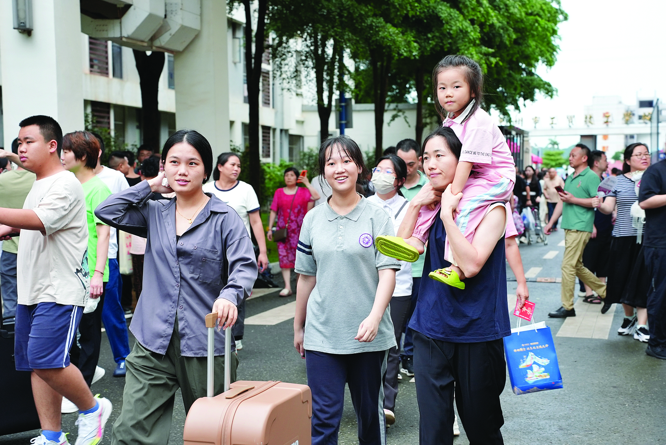 考場外,家長們拿著鮮花翹首以盼,迎接孩子們出來?紙鰞(nèi),或歡笑、或淚水,每一個瞬間都是他們成長的見證?忌鷤兓氐秸n室和宿舍,或忙碌收拾,或駐足留戀,回憶三年的點滴……