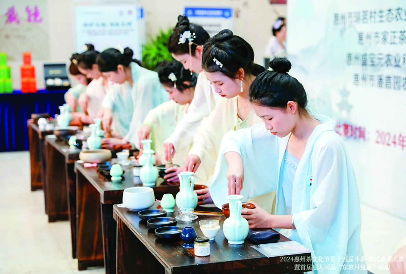 日前,“保護(hù)文物 傳承文明”2024惠州茶文化節(jié)第十五屆斗茶——宋式點(diǎn)茶大賽暨首屆惠人同品“東坡月兔茶”活動(dòng)在惠州博物館一樓大堂正式啟動(dòng)。比賽項(xiàng)目囊括茶百戲中的茶畫、漏影春、水丹青三項(xiàng)以及七湯點(diǎn)茶,現(xiàn)場(chǎng)茶香四溢,選手們各展神通,用精湛的技藝為觀賽的市民游客帶來(lái)一場(chǎng)精彩的表演。