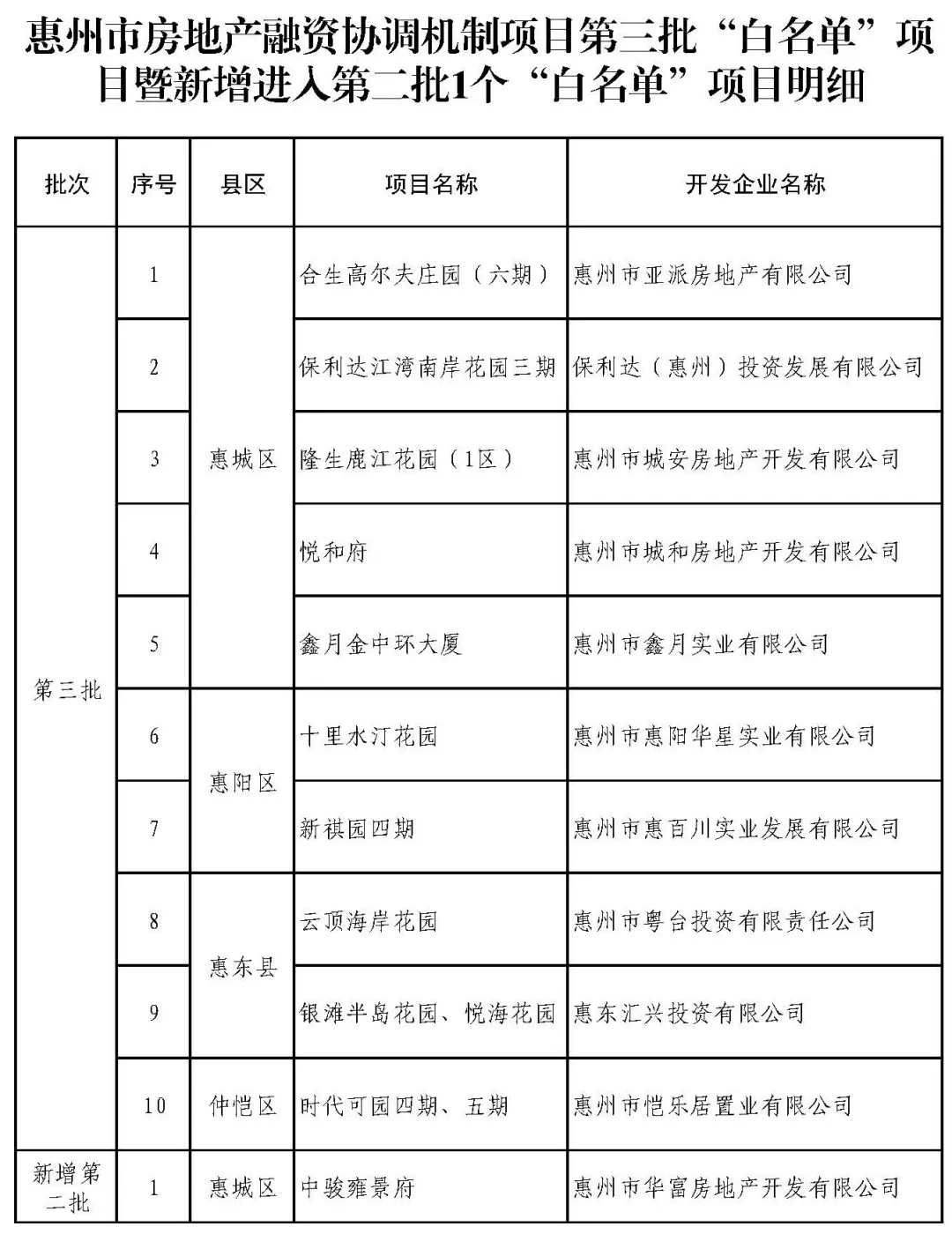 隆生鹿江花園(1區(qū))等10個(gè)項(xiàng)目
