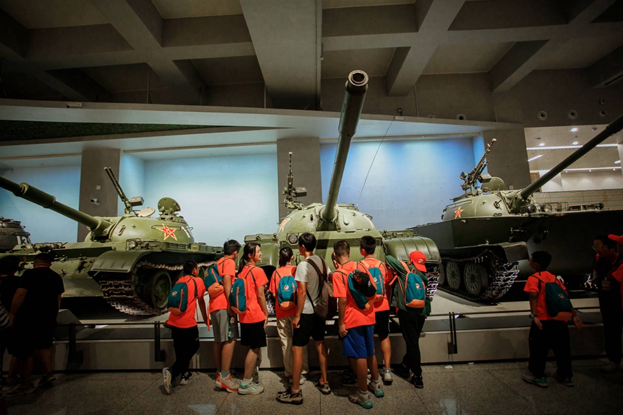 去年暑假,小惠同學(xué)研學(xué)營的孩子們在軍事博物館參觀軍事裝備。惠州東江圖片社供圖