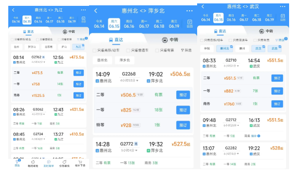 深圳-惠州北D7319/20次,深圳北-九江G2776/5次列車,深圳北-九江G2762次列車,深圳-九江G2724次列車,深圳北-萍鄉(xiāng)北G2772次列車。武漢-深圳北 G2709次列車。
