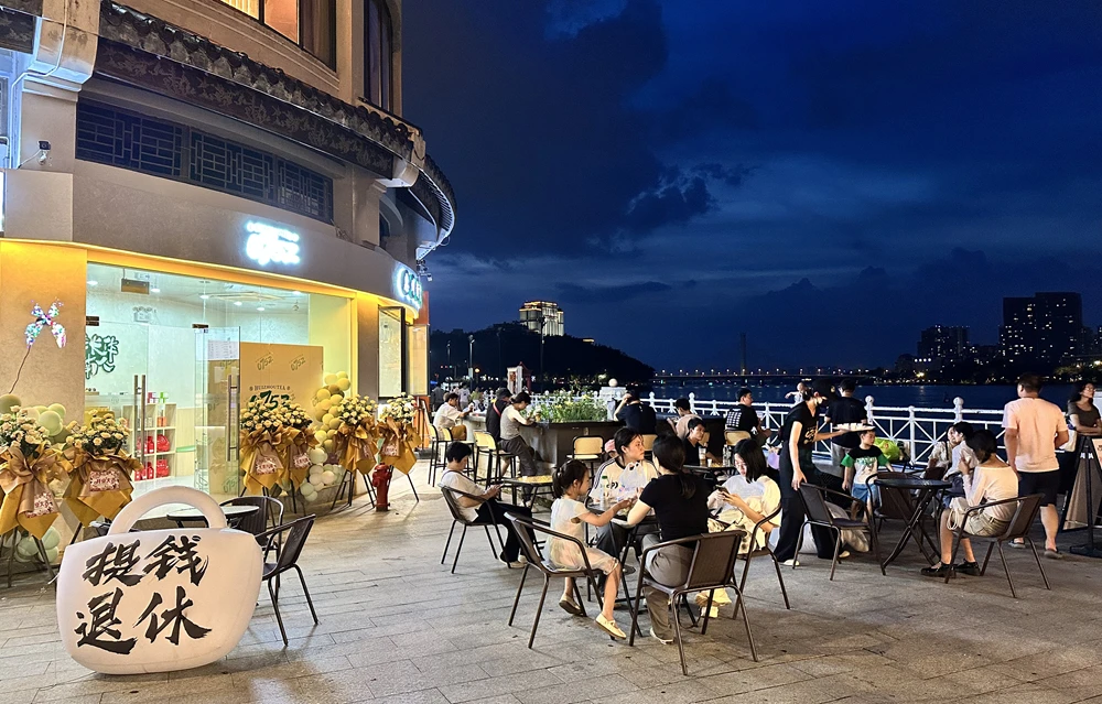來到0752水東街店,首先映入眼簾的就是開闊的東江江面,以及寬敞的店前廣場。“這個江面太壯觀了,景觀層次也很豐富,喝著0752的茶,再看著對岸的高樓大廈,以及舒適的江邊綠道,還真有點上海外灘或漢口江灘的感覺!睂τ0752水東街店的選址,市民鵬程連連點贊。