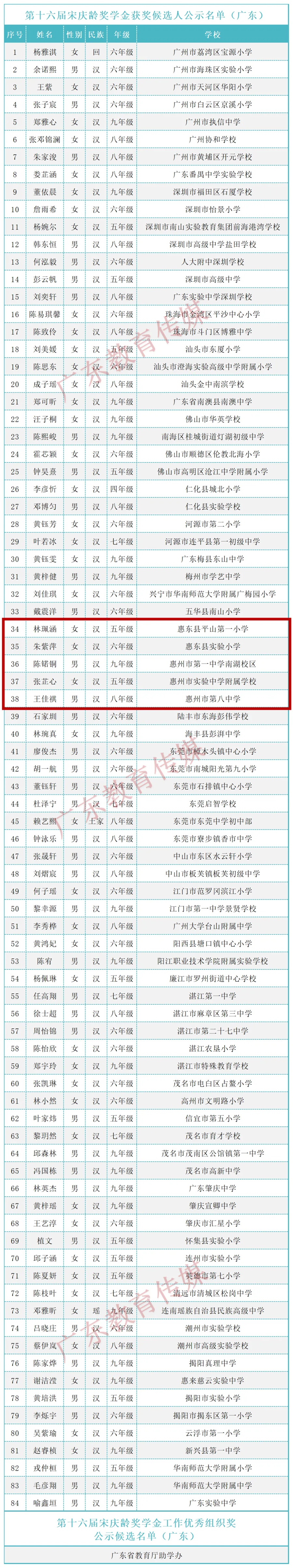 根據(jù)《教育部辦公廳關(guān)于第十六屆宋慶齡獎(jiǎng)學(xué)金評(píng)選工作的通知》(教基廳函〔2023〕18號(hào))要求,在省級(jí)教育部門評(píng)審?fù)扑],宋慶齡獎(jiǎng)學(xué)金評(píng)審委員會(huì)認(rèn)真審核的基礎(chǔ)上,現(xiàn)對(duì)擬認(rèn)定的第十六屆宋慶齡獎(jiǎng)學(xué)金獲獎(jiǎng)候選人和優(yōu)秀組織獎(jiǎng)獲獎(jiǎng)候選名單予以公示。公示期自2024年6月20日至2024年6月26日。