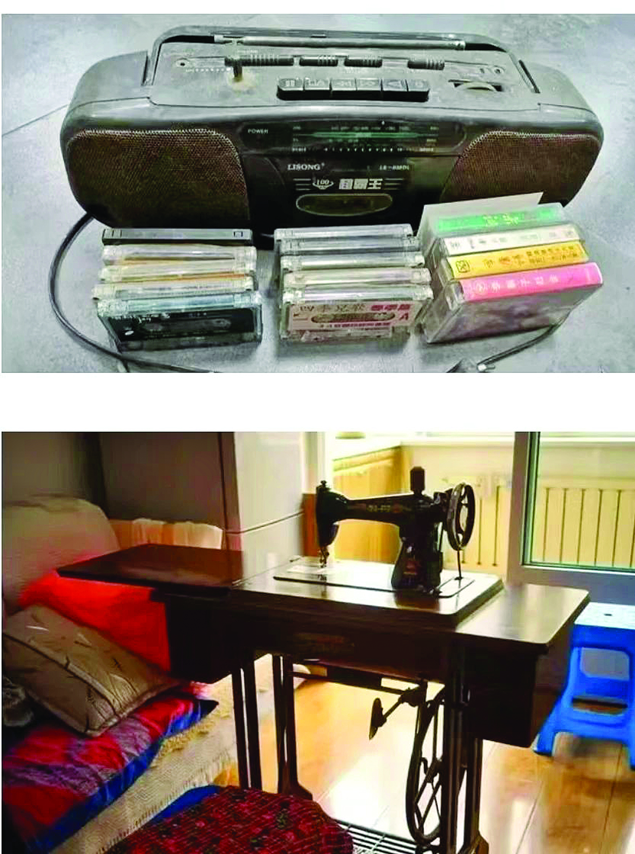 見(jiàn)證歷史變遷的生產(chǎn)工具、生活用具等物品也列入征集范圍。這是老式錄音機(jī)和縫紉機(jī);葜萑?qǐng)?bào)記者侯縣軍 通訊員鐘雪平 翻拍