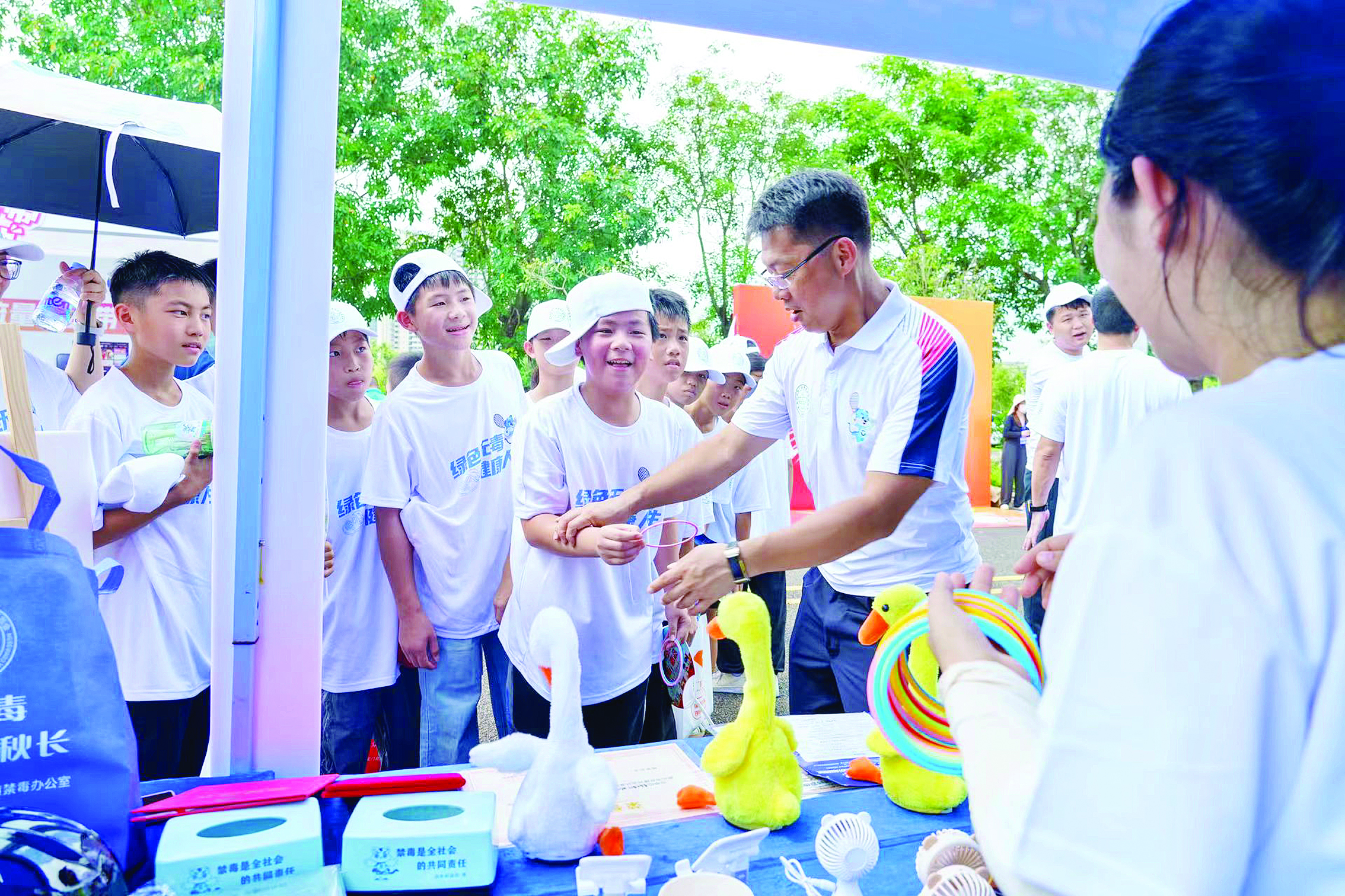 青少年通過游戲互動學習禁毒知識。惠州日報記者劉豪偉 通訊員惠公宣 攝