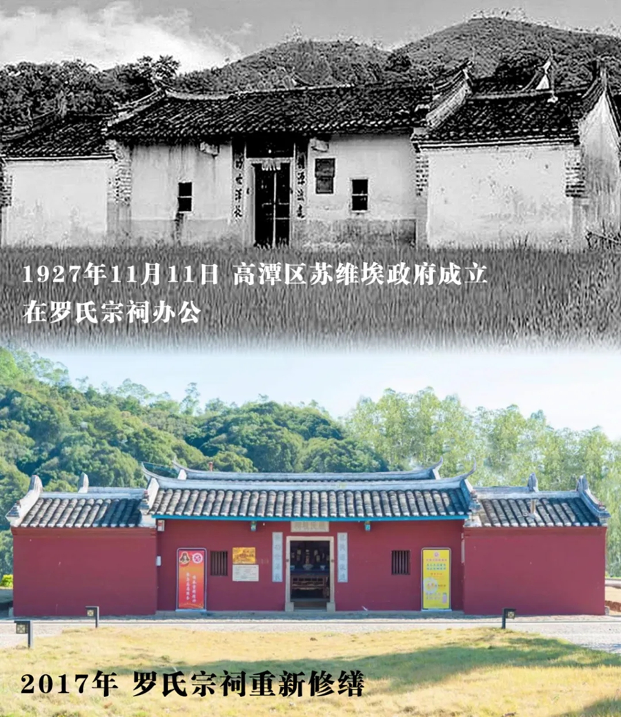 上圖:高潭區(qū)蘇維埃政府是較早建立的區(qū)級蘇維埃政權之一。1927年11月,高潭區(qū)蘇維埃政府設于羅氏宗祠,位于現惠東縣高潭鎮(zhèn),從1928年3月開始,國民黨反動派數萬軍隊進犯高潭,在艱苦卓絕的反“圍剿”斗爭中,高潭區(qū)先后有2868人被殺害,全家被殺的有412戶,中洞村原有群眾900多人,最后僅剩300多人。
