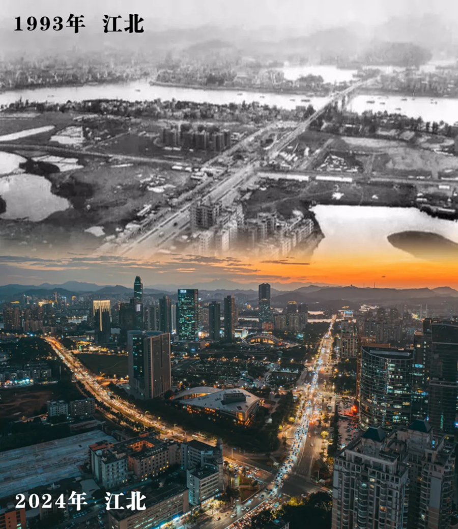 上圖:1993年,江北片區(qū)還主要是一片農田和湖泊,建筑也是寥寥無幾。老惠州人過去講“女兒不可嫁江北”,是因為心疼女兒,不讓嫁到江那邊過窮酸的日子。1978年,惠州GDP僅約6.8億元,是典型的經濟弱市、農業(yè)大市、財政窮市。