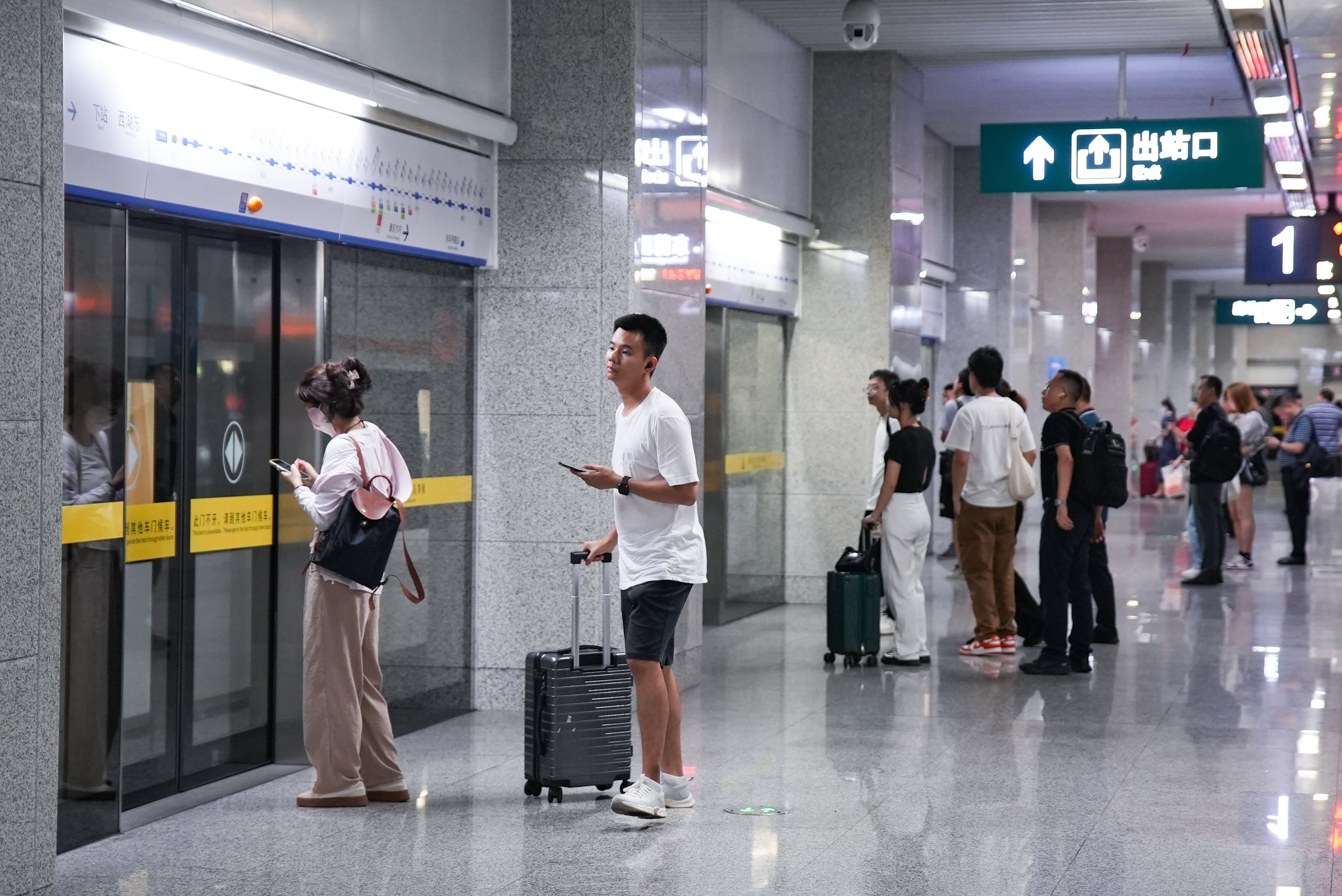 乘客在等候列車(chē)進(jìn)站;葜萑?qǐng)?bào)記者羅劍業(yè) 攝