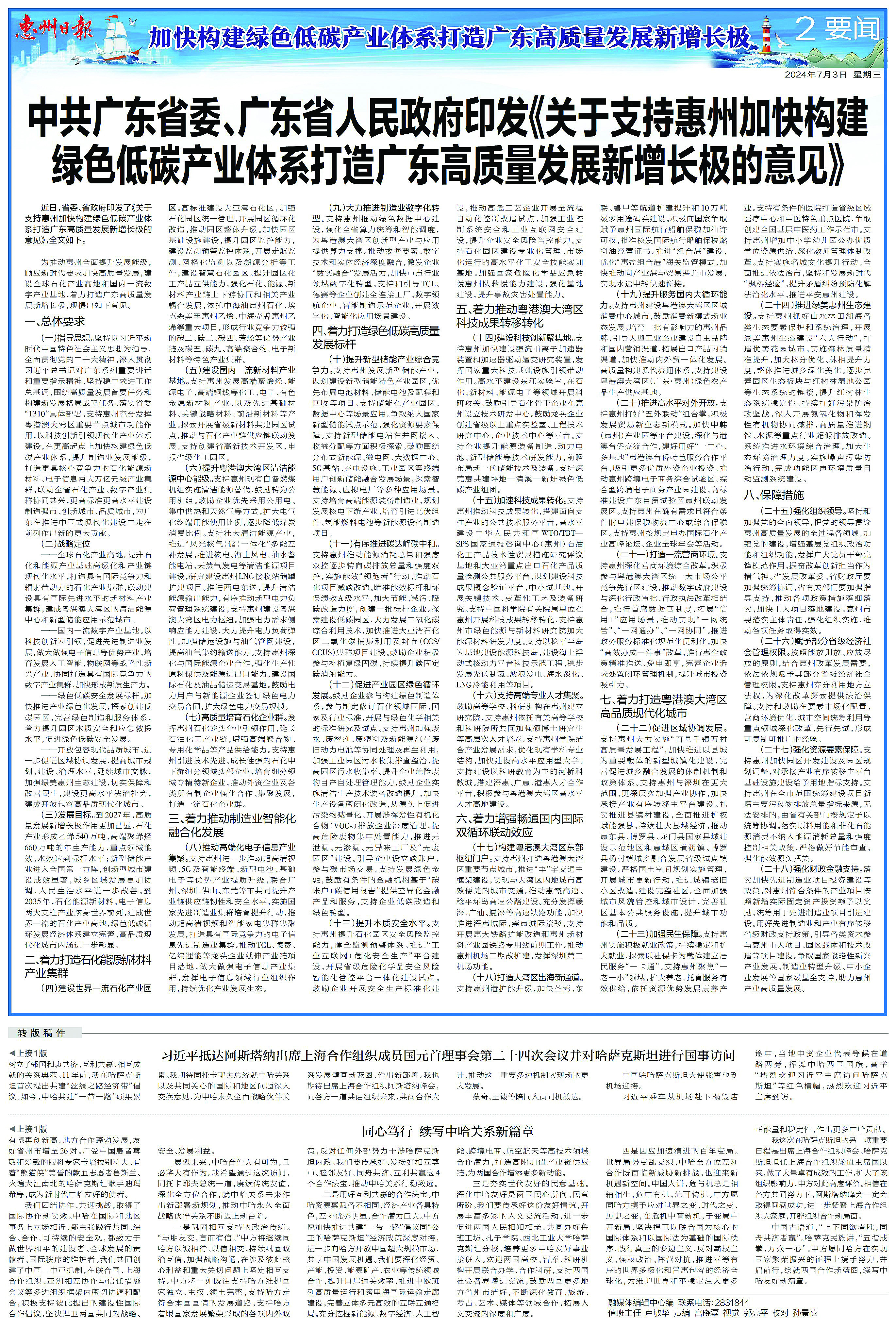 省委省政府出臺(tái)《意見(jiàn)》支持惠州加快構(gòu)建綠色低碳產(chǎn)業(yè)體系