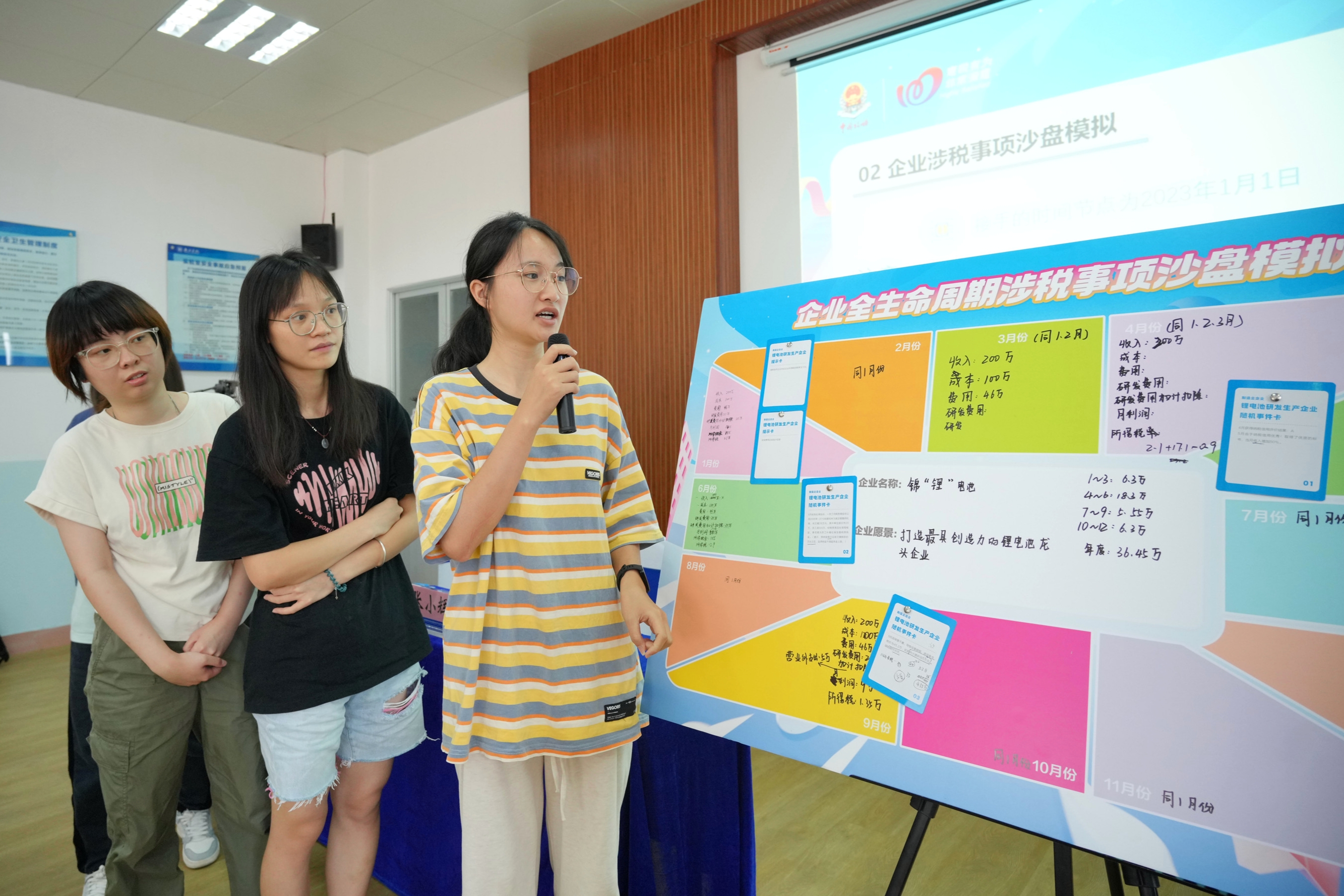 “這既是一堂稅法普及課,又是社會(huì)常識(shí)課。作為高校畢業(yè)生,我們即將步入社會(huì),但對(duì)稅收的了解還停留在理論層面,沒有在實(shí)踐中去深入理解。在這次沙盤演練中,我們組扮演了一家高新技術(shù)企業(yè)。我們作為創(chuàng)業(yè)者的角色,深入體驗(yàn)了原來企業(yè)從創(chuàng)立到發(fā)展壯大需要提前考慮很多涉稅事項(xiàng),諸如稅務(wù)登記、發(fā)票領(lǐng)用、納稅信用等實(shí)踐知識(shí),整個(gè)過程體驗(yàn)下來受益匪淺,對(duì)未來創(chuàng)業(yè)就業(yè)非常有用!被葜輰W(xué)院經(jīng)濟(jì)管理學(xué)院學(xué)生陳同學(xué)說。