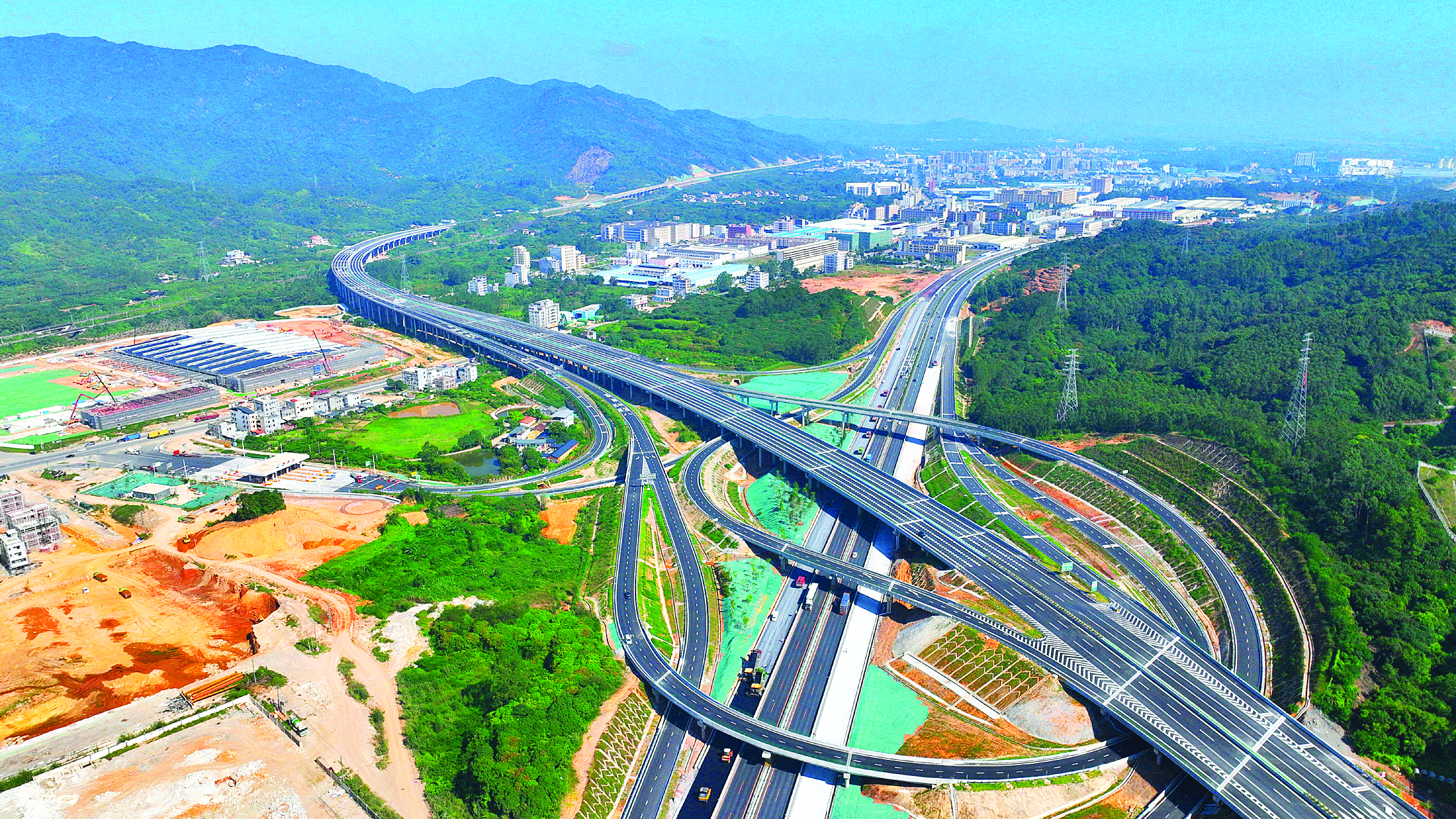 惠州著力構(gòu)建粵港澳大灣區(qū)東部樞紐門戶。這是惠龍高速象頭山(樞紐)互通立交。