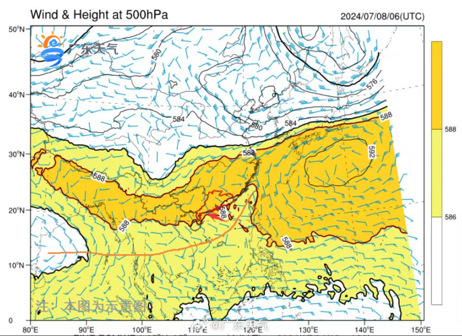 關(guān)注:①高溫炎熱,注意防暑防曬。②雖有副高罩著,但低層南風(fēng)較活躍,熱力不穩(wěn)定條件好,注意防御局地強(qiáng)對(duì)流。