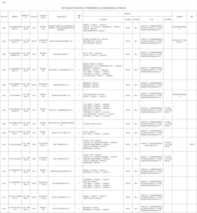 普通高等學(xué)校畢業(yè)生和社會(huì)上具有國家承認(rèn)學(xué)歷的人員。龍門縣轄區(qū)范圍內(nèi)事業(yè)單位在編在崗工作人員不在招聘對象范圍。