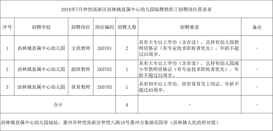 7月仲愷高新區(qū)瀝林鎮(zhèn)直屬中心幼兒園臨聘教職工招聘