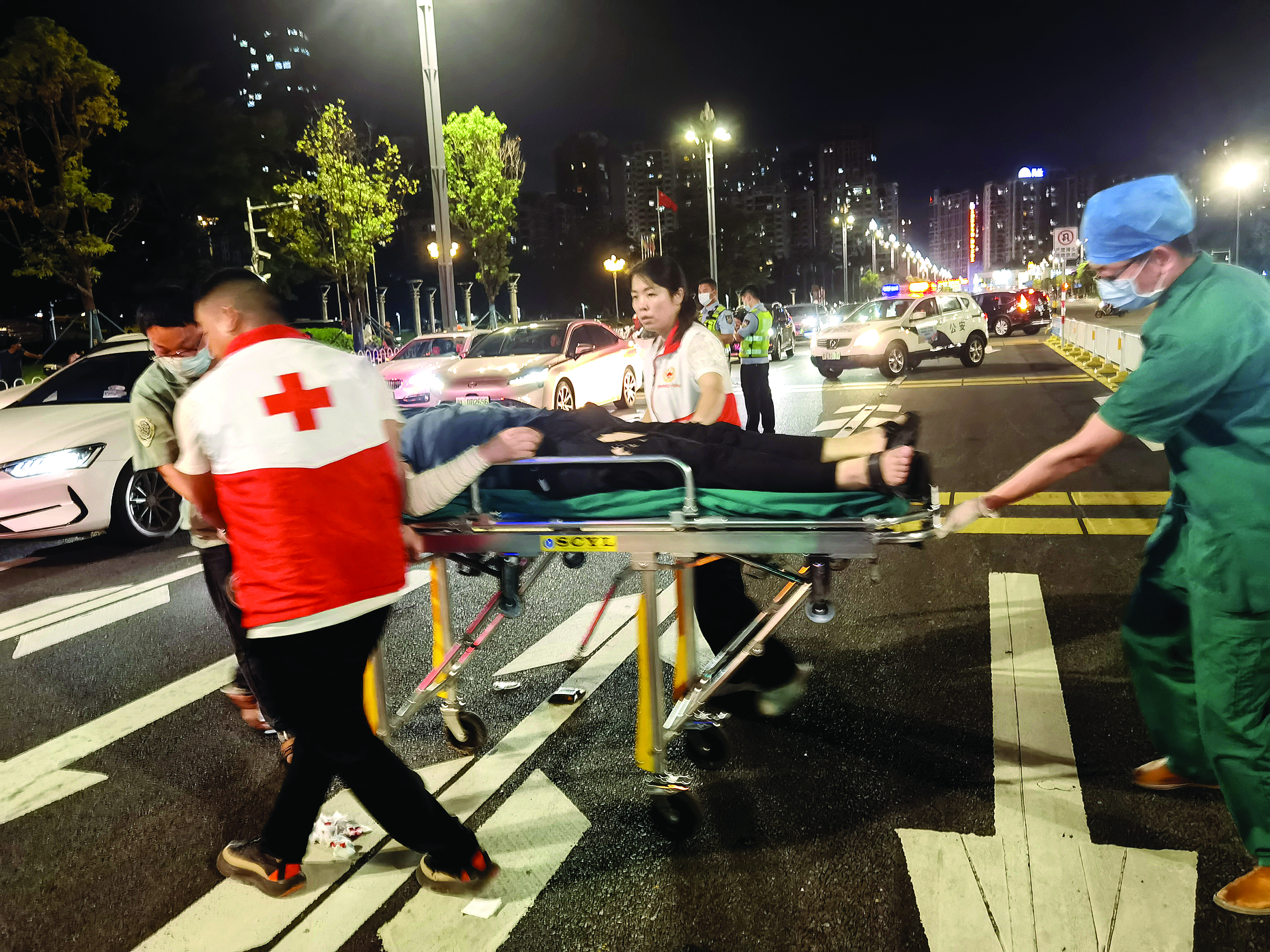 6月28日21時38分,惠陽淡水金惠大道旁、市政廣場紅綠燈路口,一男子騎車摔倒,頭部出血。此時,正在市政廣場上組織應(yīng)急救護公益宣講活動的惠州市紅十字醫(yī)療救援志愿服務(wù)隊惠陽區(qū)分隊隊長吳曉萍聽到了急促的呼喊聲:“快來人呀,有人受傷了……”