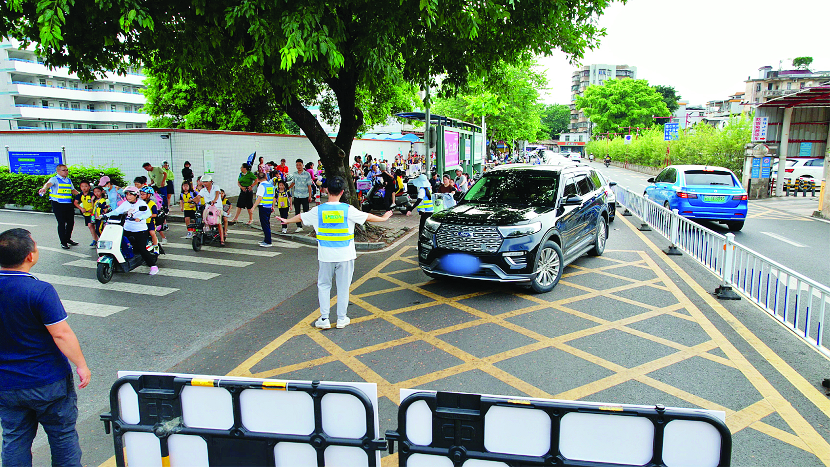 “您好,東坡公園智慧停車(chē)場(chǎng)入口在前方右轉(zhuǎn)處。”“這位家長(zhǎng),路邊不能停車(chē),接送孩子的話(huà)請(qǐng)把車(chē)停到地下車(chē)庫(kù)!贝舜涡袆(dòng)中,市交投智停公司累計(jì)派出10余人參與行動(dòng)。烈日炎炎下,他們身穿“惠泊車(chē)”工作馬甲,配合街道辦、交警部門(mén)、學(xué)校志愿者,在惠陽(yáng)高級(jí)中學(xué)門(mén)前、東坡公園智慧停車(chē)場(chǎng)停車(chē)出入口、惠州市第二小學(xué)周邊三岔路口等重點(diǎn)地段引導(dǎo)交通,在規(guī)勸違停車(chē)輛的同時(shí),引導(dǎo)接送學(xué)生的車(chē)主有序?qū)④?chē)輛停放到地下車(chē)庫(kù)。