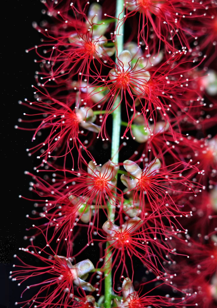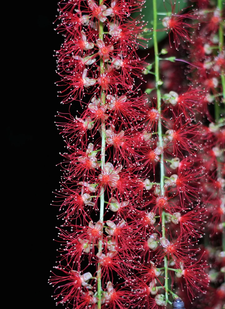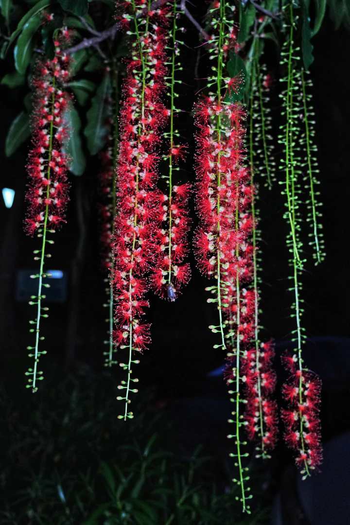 紅花玉蕊也被人稱之為“仲夏夜之花”,花期短暫,夜晚開放,第二天就凋謝了。通常下午4-5點(diǎn)開花,至翌日凌晨5-6點(diǎn)花落;ɡ購纳贤乱来尉`放,常多朵花同時開放。單朵花暮開朝落,花期短暫;整棵樹花期約一周至半個月左右。開花時散發(fā)特殊氣味。