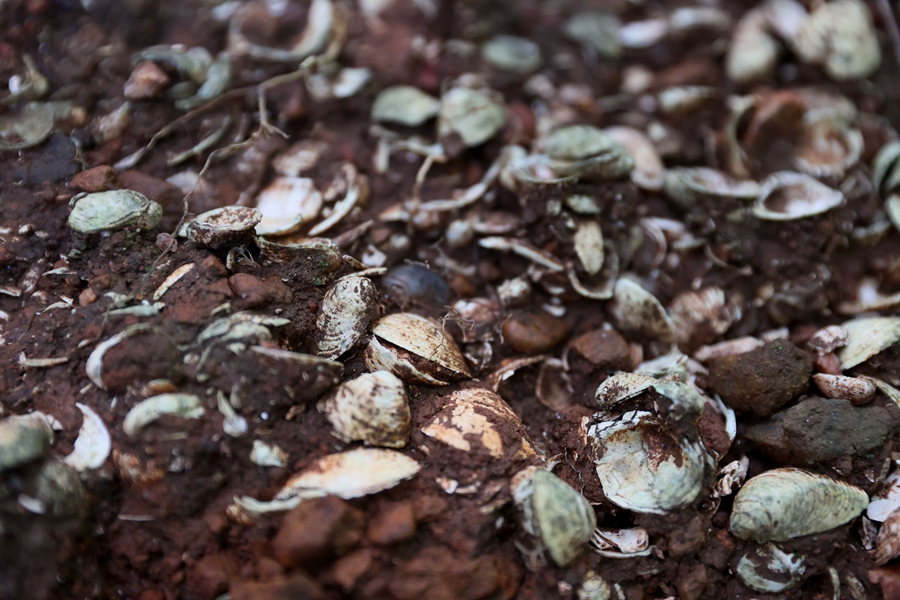 葫蘆嶺貝丘遺址上的貝殼積層。