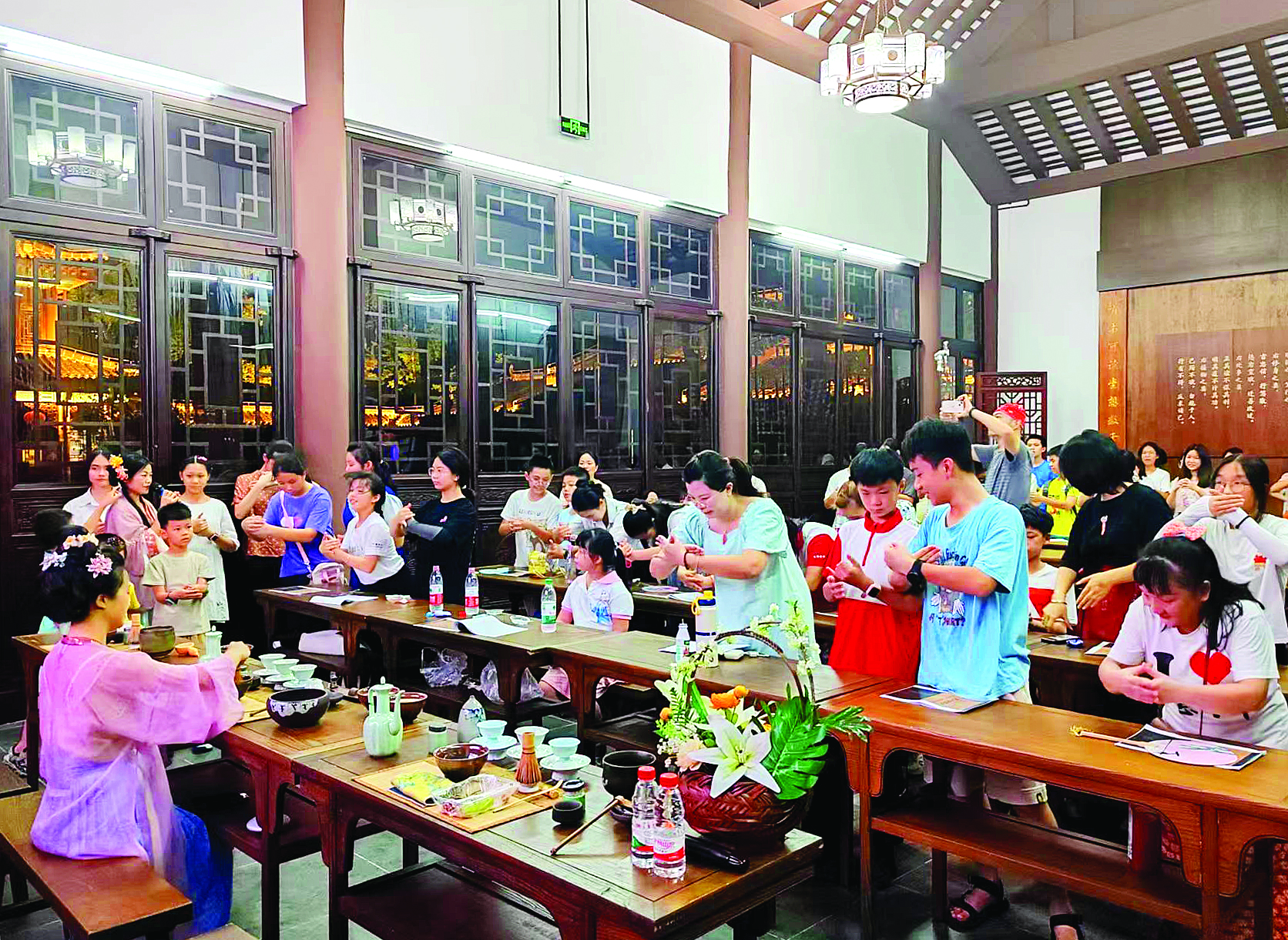 志愿者學(xué)習(xí)、分享東坡茶文化。