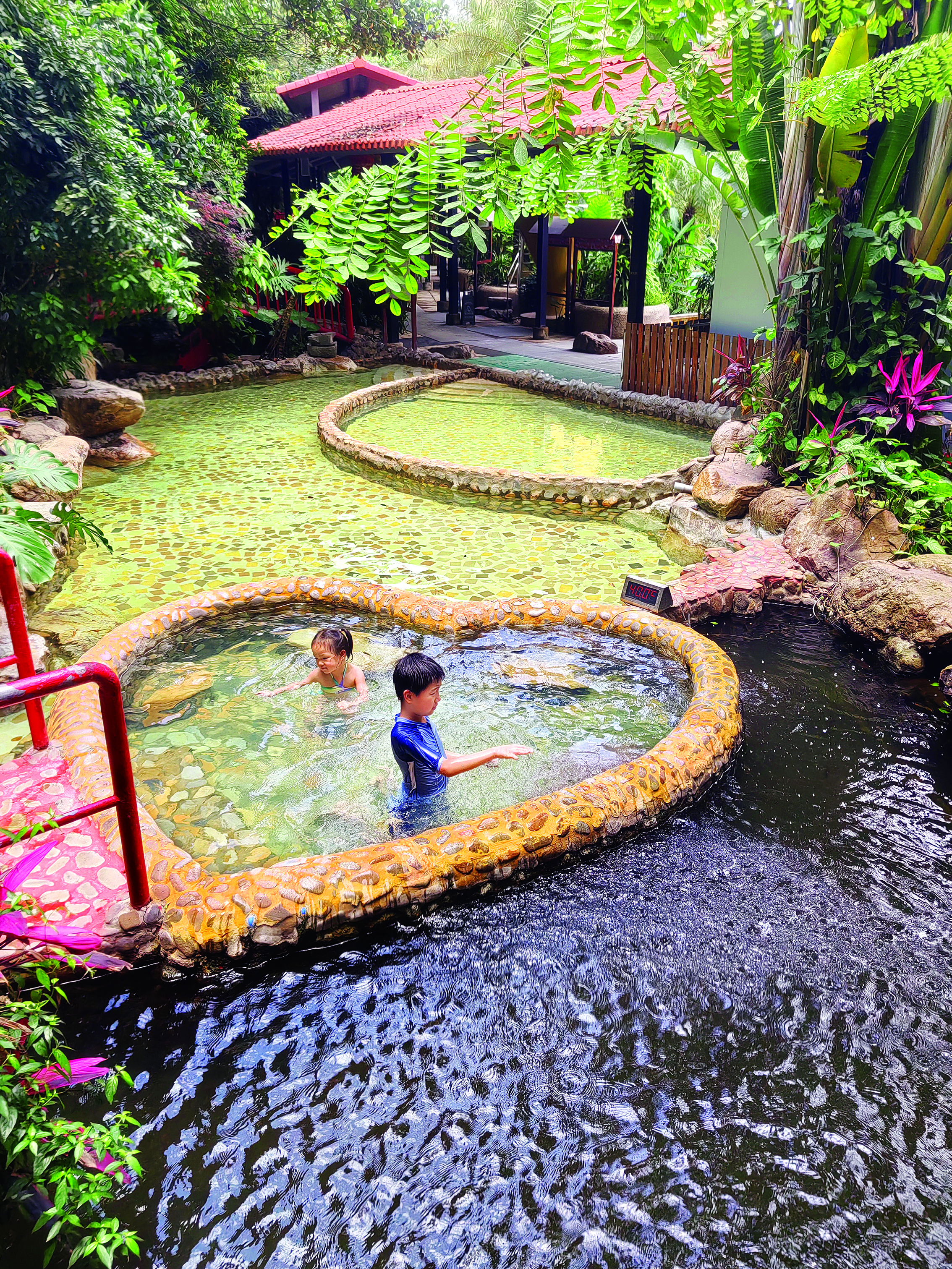 小朋友在龍門南昆山云頂旅游度假區(qū)泡溫泉。
